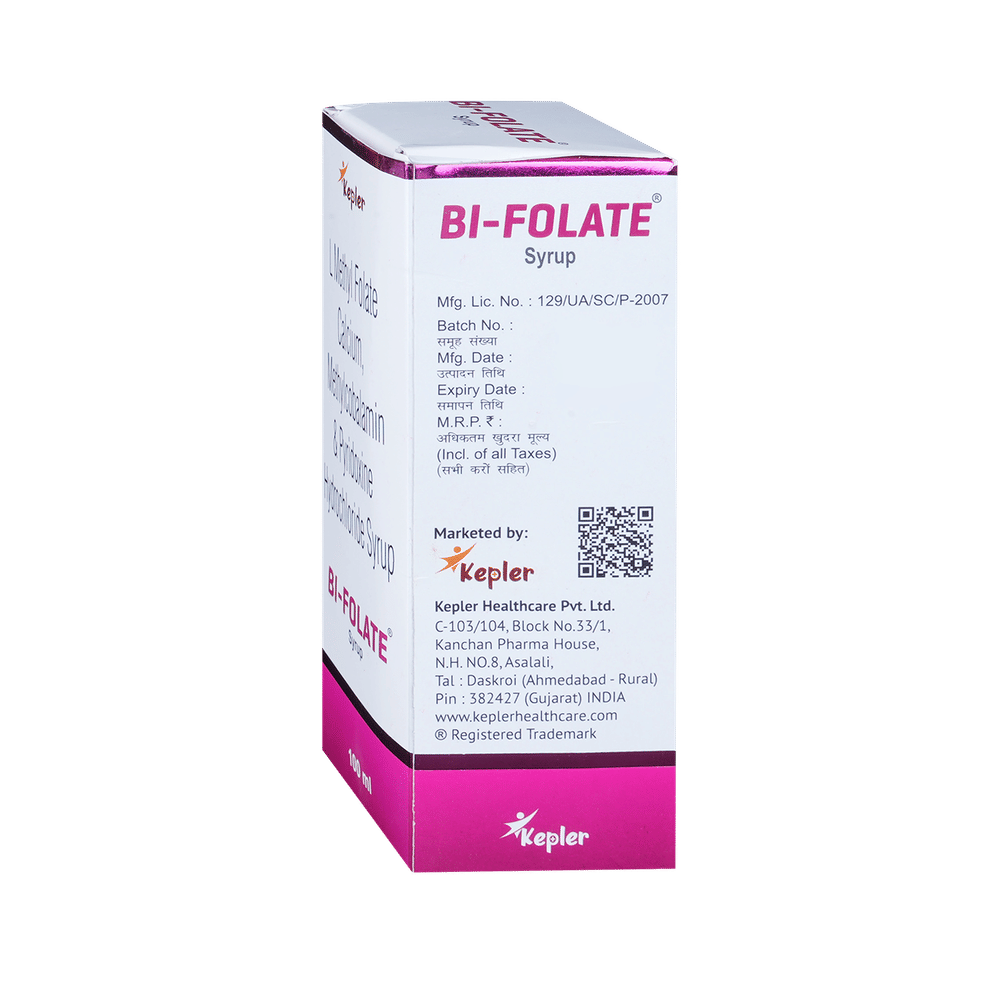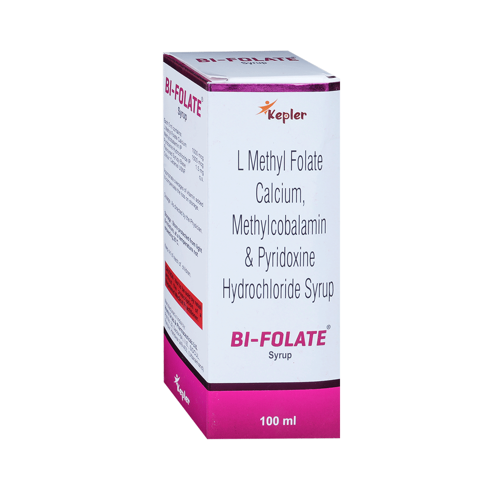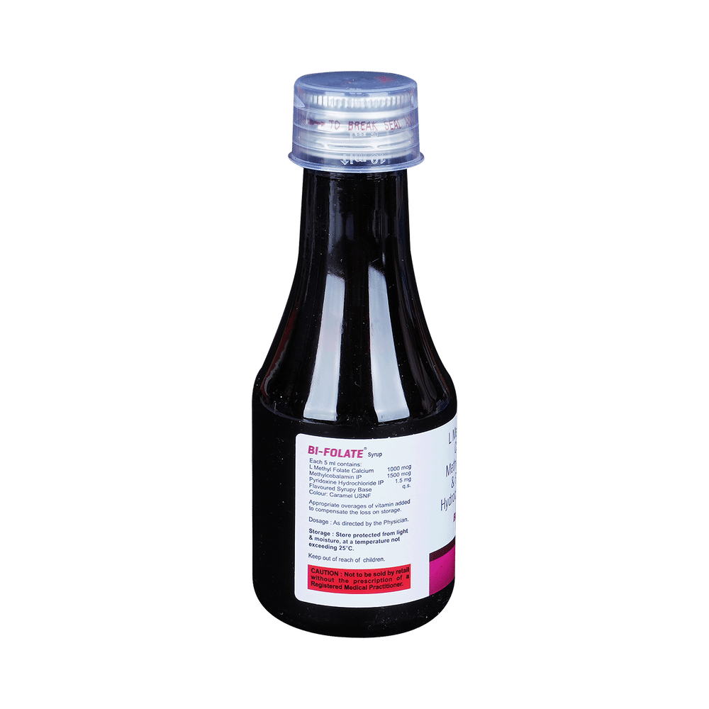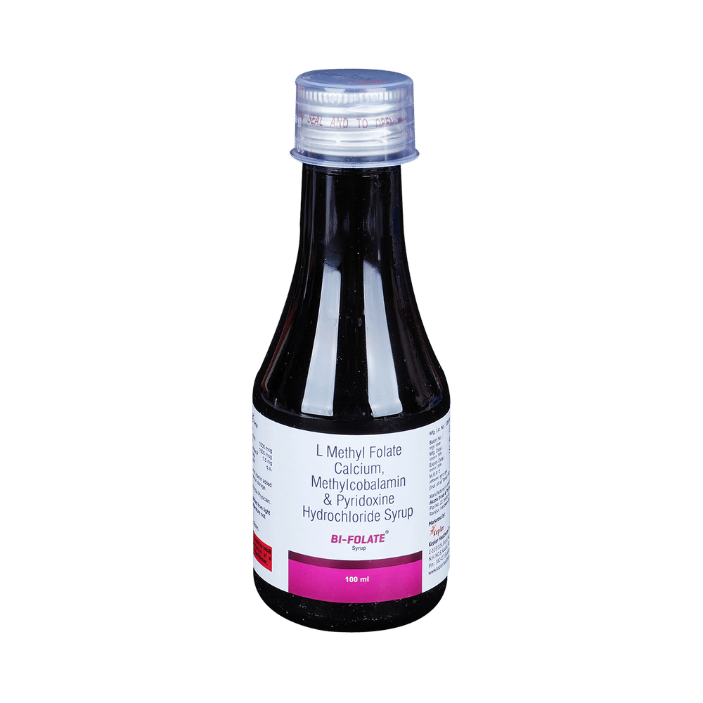 BI-Folate Syrup is a combination medicine that is used in the treatment of nutritional deficiencies. It helps in the growth and development of the body and replenishes the body's stores of important nutrients. BI-Folate Syrup may be taken with or without food. Take it in the exact dose and duration as prescribed by your doctor. Take the medicine at a fixed time to help you remember to take it. Do not take more than the recommended dose.BI-Folate Syrup is generally well tolerated and does not usually cause side effects. However, if you experience any symptoms while on treatment with BI-Folate Syrup, let your doctor know. If you experience any symptoms of severe allergic reactions like swelling, itching, difficulty breathing, and hives, contact your doctor immediately.Before taking BI-Folate Syrup, let your doctor know if you have any preexisting medical conditions. Do not take medicine if you have a known history of allergic reactions to any components in BI-Folate Syrup. This medicine is generally safe for pregnant and breastfeeding women.