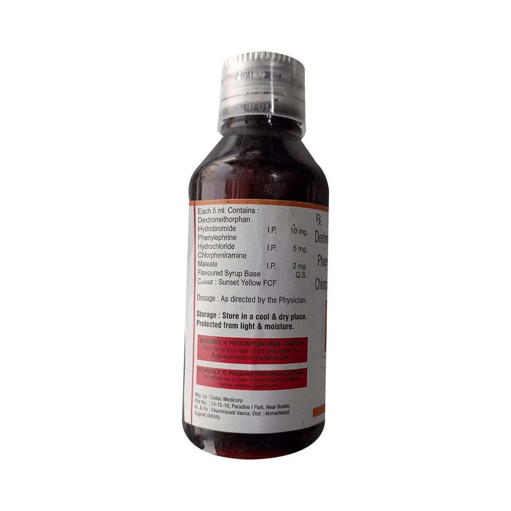 Salt Composition: Phenylephrine (5mg/5ml) + Chlorpheniramine Maleate (2mg/5ml) + Dextromethorphan Hydrobromide (10mg/5ml)