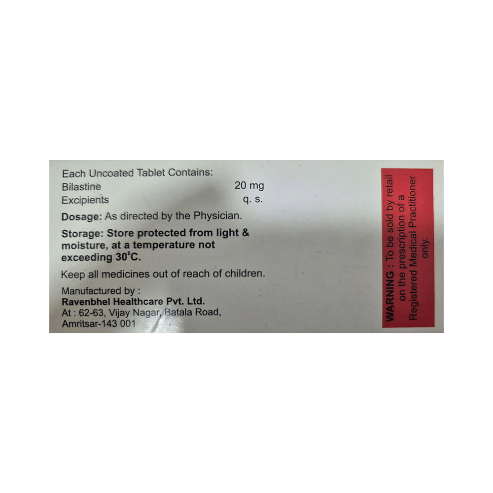 Salt Composition: Bilastine (20mg)