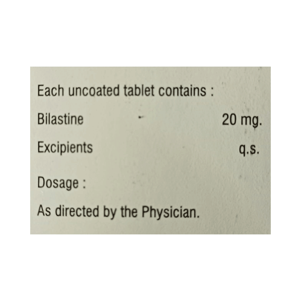 Bilaneez 20mg Tablet belongs to a group of medicines known as antihistamines. It is used in the treatment of allergy symptoms such as runny nose, stuffy nose, sneezing, watery eyes, and congestion or stuffiness. Bilaneez 20mg Tablet can be taken one hour before or two hours after food, but take it at the same time to get the most benefit. It should be taken as your doctor's advice. The dose and how often you take it depend on what you are taking it for. Your doctor will decide how much you need to improve your symptoms. Remember, dosage is decided on the basis of the type of medicine (tablet or syrup ), age, and present medical condition of the person. You should take this medicine for as long as it is prescribed for you. If you do not observe any improvement in the symptoms, consult with the doctor.The most common side effects of this medicine include headaches and drowsiness. If these bother you or appear serious, let your doctor know. There may be ways of reducing or preventing them. Generally, it is advised to drink plenty of fluids while on treatment with this medicine. To overcome dizziness, avoid driving or attention-seeking activities until you know how the medicine affects you.Before taking this medicine, let your doctor know if you are pregnant or breastfeeding. Your doctor should also know about all other medicines you are taking as many of these may make this medicine less effective or change the way it works. You must avoid fruit juice before taking the medicine.