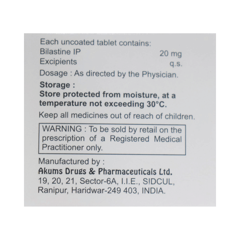 Bilareph 20 Tablet is an antiallergic medication. It treats allergy symptoms such as such as itching, swelling, and rashes by blocking the effects of a chemical messenger (histamine) in the body.