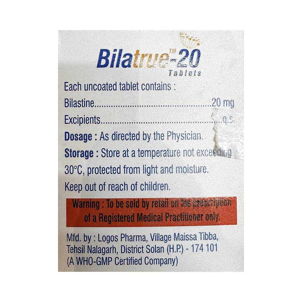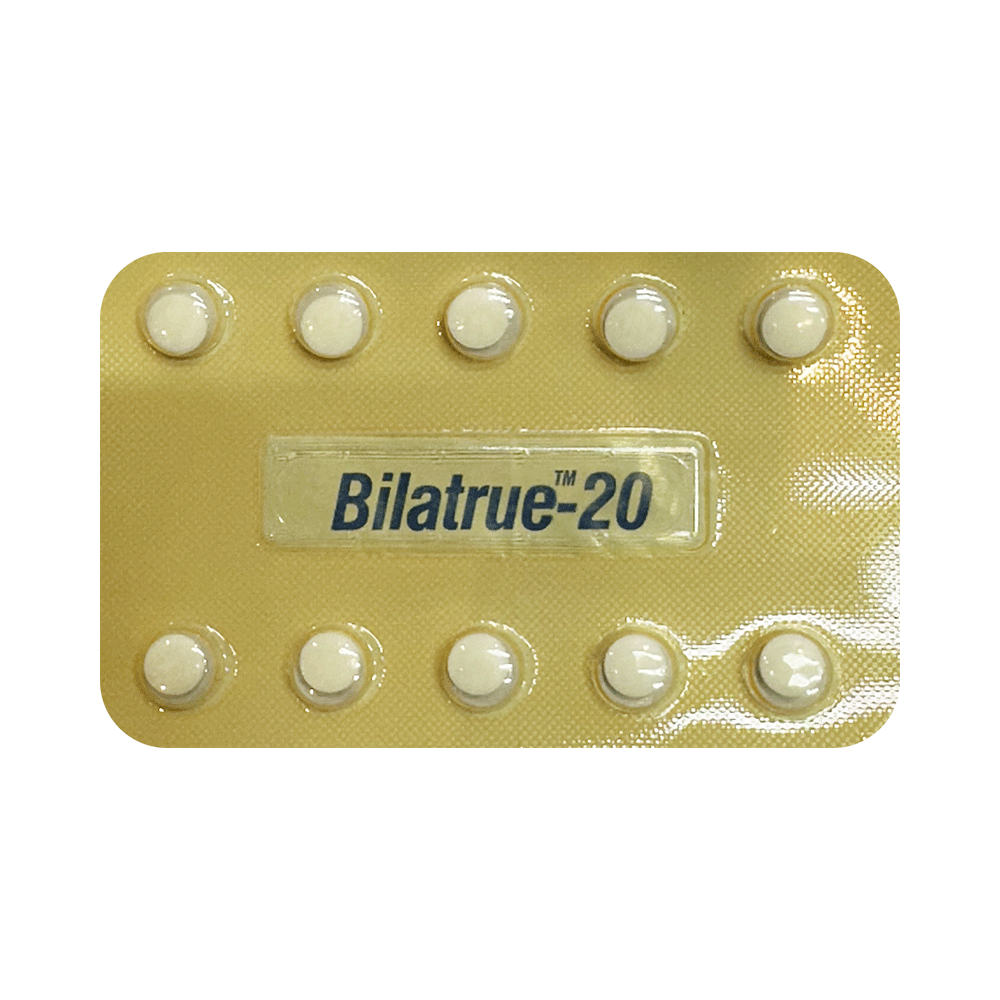 Bilatrue 20 Tablet is an antiallergic medication. It treats allergy symptoms such as such as itching, swelling, and rashes by blocking the effects of a chemical messenger (histamine) in the body.