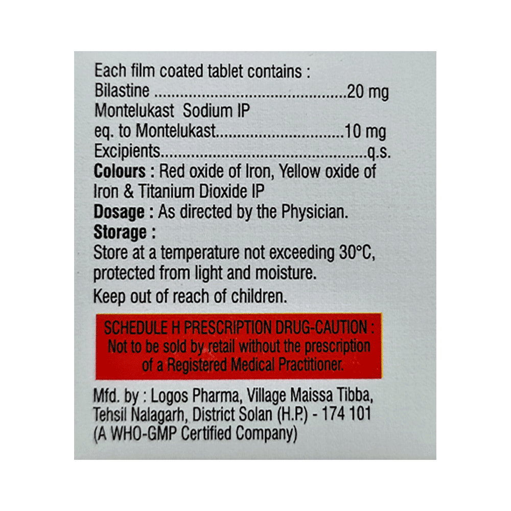 Salt Composition: Bilastine (20mg) + Montelukast (10mg)