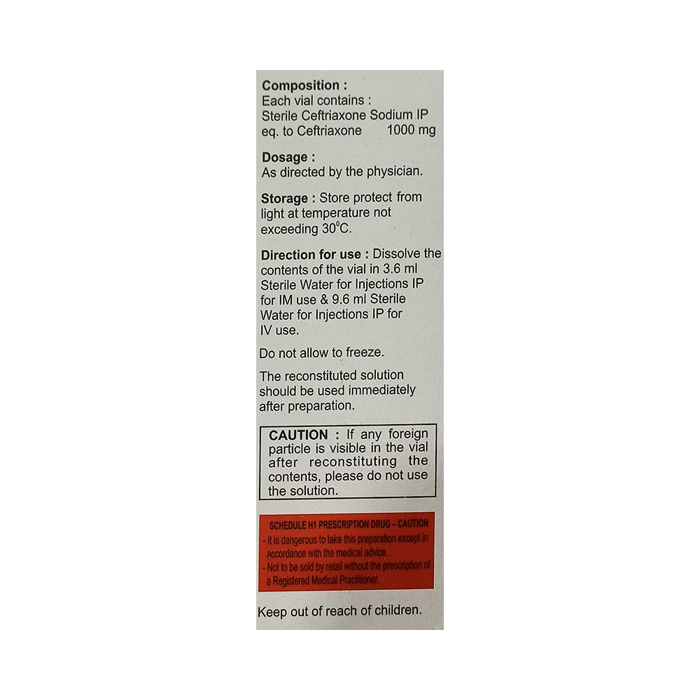 Salt Composition: Ceftriaxone (1000mg)