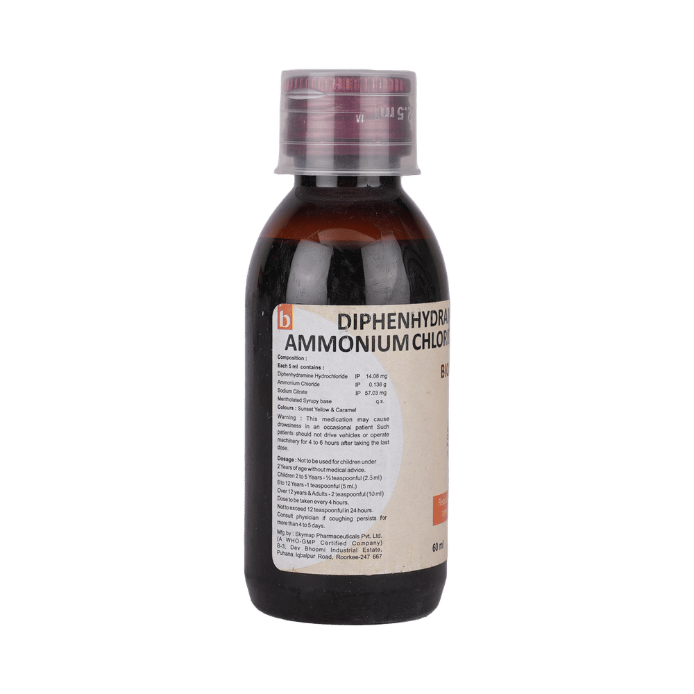 Salt Composition: Diphenhydramine (14.08mg/5ml) + Ammonium Chloride (138mg/5ml) + Sodium Citrate (57.03mg/5ml)
