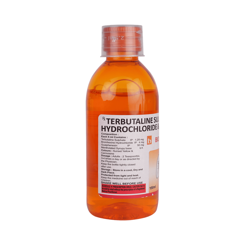 Salt Composition: Guaifenesin (50mg/5ml) + Terbutaline (1.25mg/5ml) + Bromhexine (4mg/5ml)
