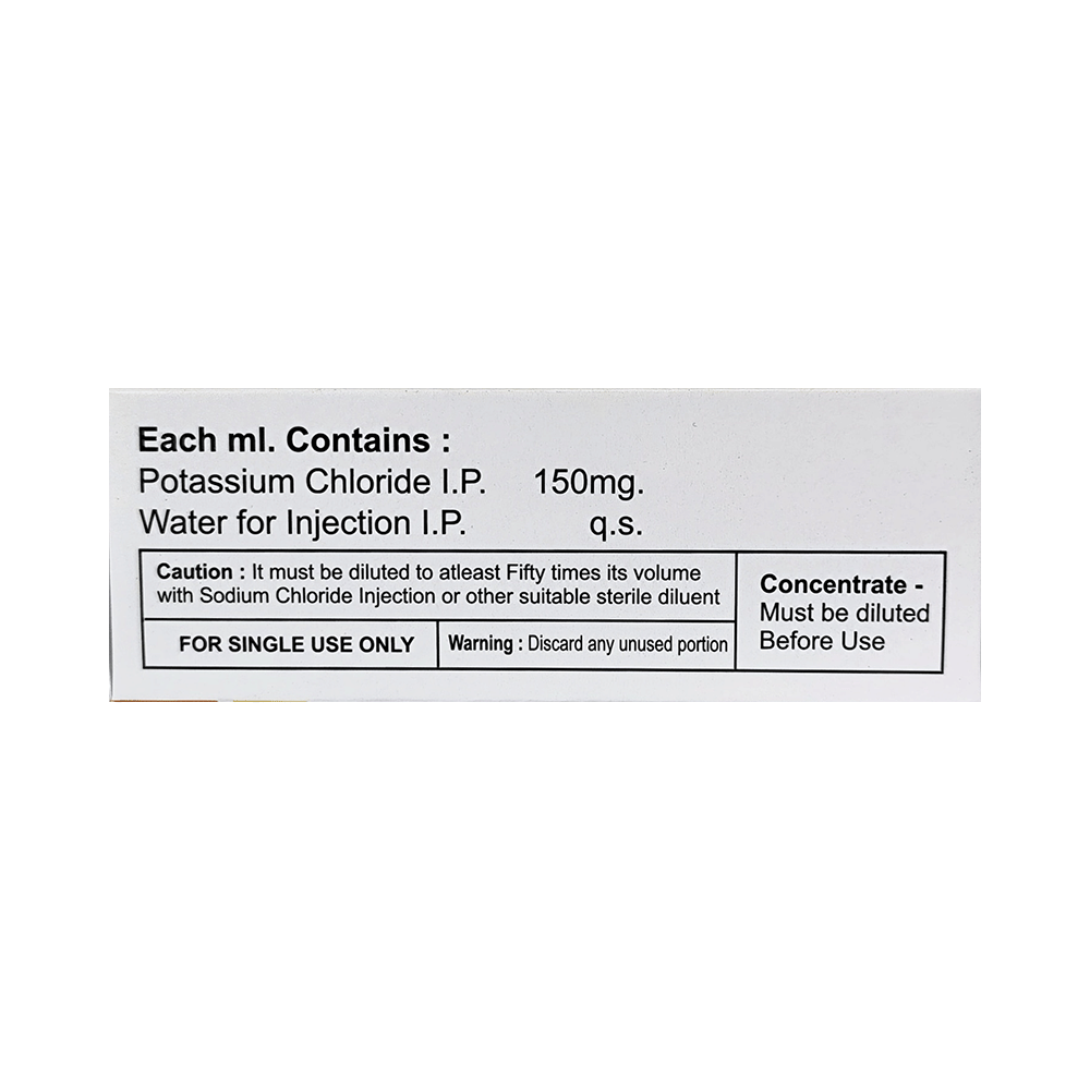 Biogen Potassium Chloride Injection is a medicine used in the treatment of potassium deficiency in the body. This supplement can relieve muscle weakness, irregular heartbeat, nausea, and vomiting. It is an essential nutrient of the body which helps in the maintenance of good health. Biogen Potassium Chloride Injection is generally administered by a doctor or a nurse. You should not self-administer this medicine at home. Take the injection regularly and for as long as the doctor has prescribed it for maximum benefits.This medicine is usually well-tolerated, however, it may cause mild injection site reactions (like pain, swelling, or redness), nausea, muscle weakness, and tingling sensation. Consult your doctor if any of the side effects persist.Breastfeeding and pregnant women should consult the doctor before receiving the treatment. Also, tell your doctor if you are on any medication for any health conditions.