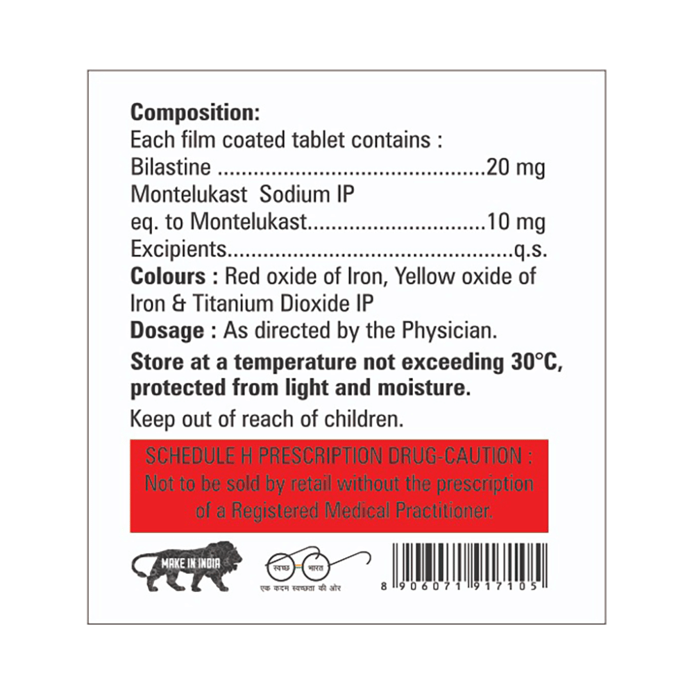 Salt Composition: Bilastine (20mg) + Montelukast (10mg)