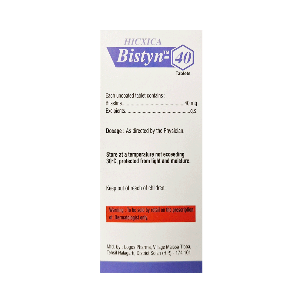 Bistyn 40 Tablet is an antiallergic medication. It treats allergy symptoms such as such as itching, swelling, and rashes by blocking the effects of a chemical messenger (histamine) in the body.