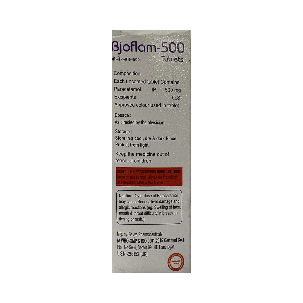 In Pain reliefBjoflam 500 Tablet is a common painkiller for treating aches and pains. It is widely used and rarely causes any side effects if taken properly. To get the most benefits, take it as prescribed. Do not take more or for longer than needed as that can be dangerous.In Treatment of FeverBjoflam 500 Tablet is also used to reduce a high temperature (fever). It works by blocking the release of certain chemical messengers that cause fever. It may be prescribed alone or in combination with other medicines. Take it as prescribed by the doctor.show moreshow less