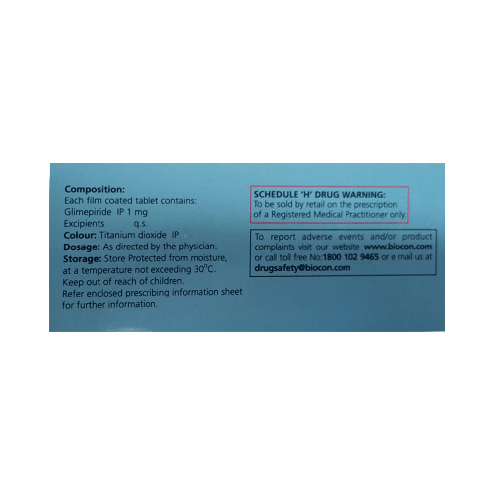 Blisto 1 Tablet belongs to a group of medicines called sulfonylureas and is used to treat type 2 diabetes mellitus in adults. It helps control blood sugar levels in people with diabetes thereby preventing serious complications of diabetes such as kidney damage and blindness. Blisto 1 Tablet may be used alone or along with other medicines. It should be taken just before or with the first meal of the day. Take it regularly at the same time each day to get the maximum benefit. Your doctor will decide what dose is best for you and this may change from time to time according to your blood sugar levels.Keep taking Blisto 1 Tablet, even if you feel well or your blood sugar levels are controlled. If you stop it without consulting your doctor, your blood sugar levels could rise to put you at risk of diabetes complications such as kidney damage, blindness, nerve problems, and loss of limbs. Remember that it is only part of a treatment program that should also include a healthy diet, regular exercise, and weight reduction as advised by your doctor. Your lifestyle plays a big part in controlling diabetes.The most common side effects of taking Blisto 1 Tablet include low blood sugar levels (hypoglycemia), nausea, headache, weakness, and dizziness. Make sure you recognize the signs of having low blood sugar levels, such as sweating, dizziness, headache, and shaking, and know how to deal with them. To prevent this, it is important to have regular meals and always carry a fast-acting source of glucose such as sugary food or fruit juice with you. Drinking alcohol can also increase your risk of low blood sugar levels and hence should be avoided. Some people may experience an increase in weight with this medicine.You should not take Blisto 1 Tablet if you have type 1 diabetes mellitus, diabetic ketoacidosis (high levels of acid in your blood), or if you have severe kidney or liver disease. Before taking this medicine, tell your doctor if you have ever had heart disease, thyroid disease, or some hormonal conditions, as it may not be suitable. Pregnant or breastfeeding women should also consult their doctor before taking it. Your blood sugar levels should be checked regularly and your doctor may also advise blood tests to monitor your blood cell counts and liver function.