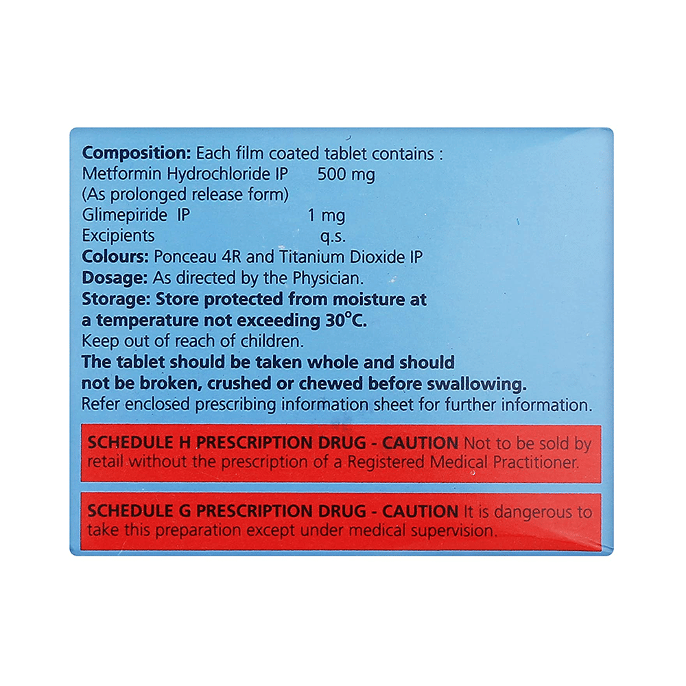 Salt Composition: Glimepiride (1mg) + Metformin (500mg)