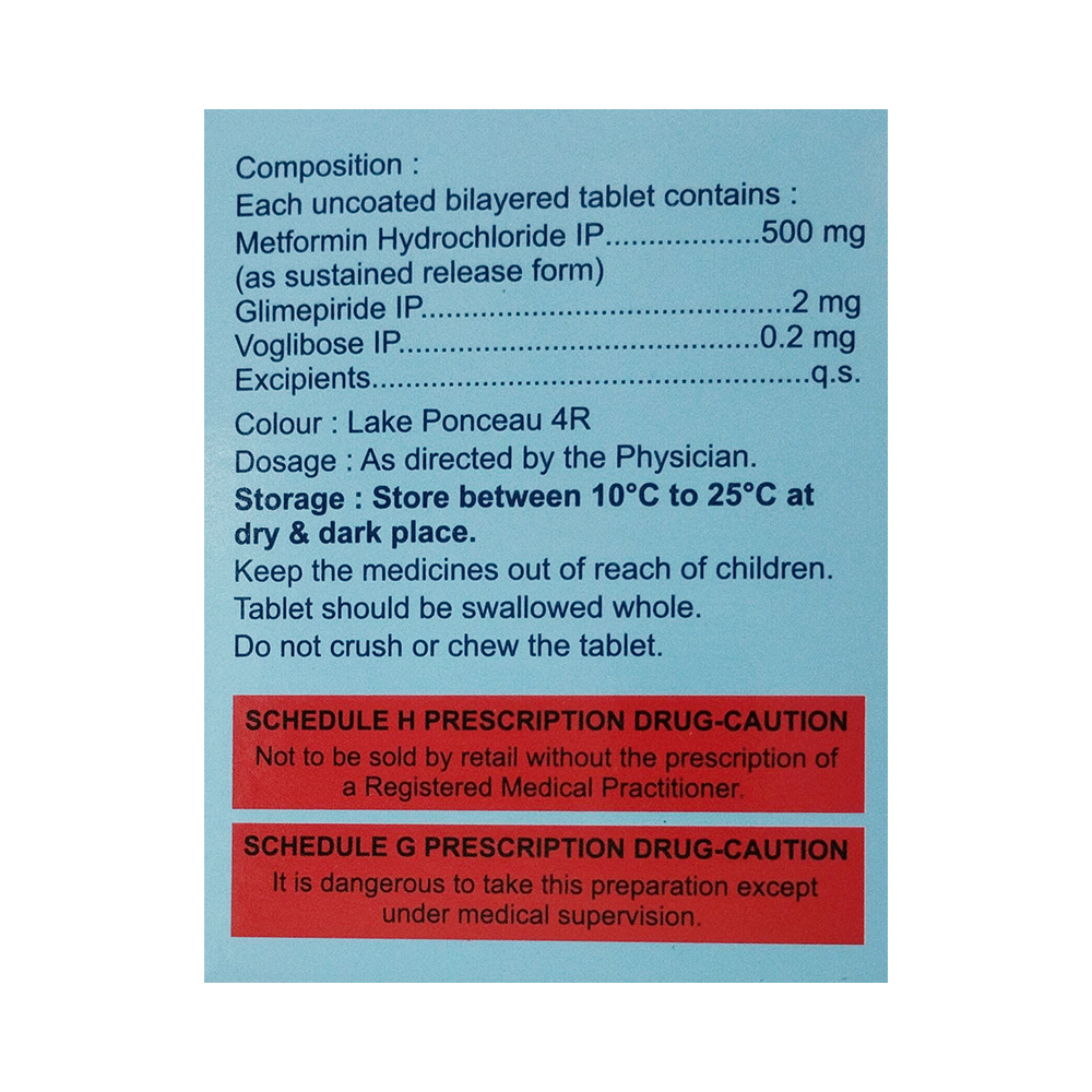 Salt Composition: Glimepiride (2mg) + Metformin (500mg) + Voglibose (0.2mg)