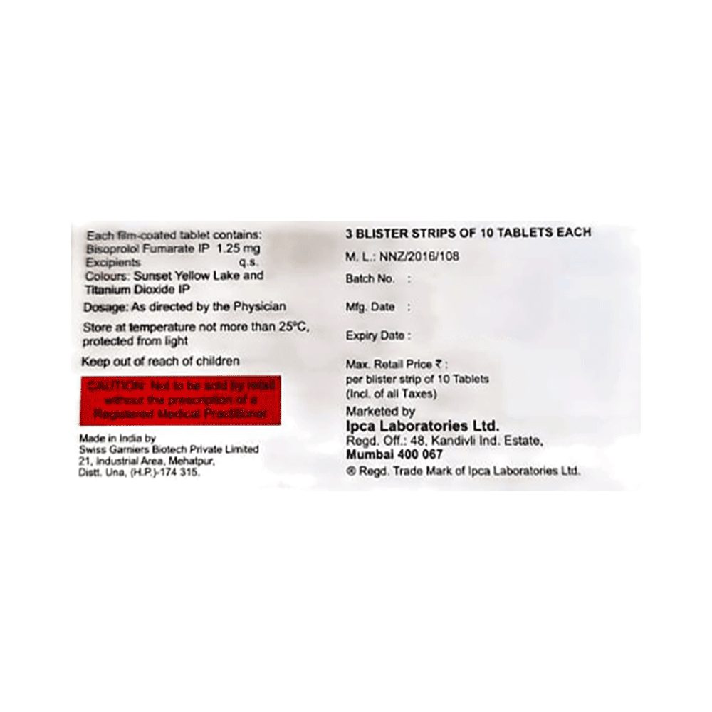 In Treatment of Hypertension (high blood pressure)Blocpro 1.25 Tablet blocks the effects of some chemicals on your heart and blood vessels. It slows down your heart rate and helps the heart to beat with less force. This lowers your blood pressure and helps in reducing your risk of having a stroke, a heart attack, other heart problems, or kidney problems in the future. This medicine needs to be taken regularly to be effective, so keep taking it even if you feel well. Do not stop without talking to your doctor.In Treatment of Angina (heart-related chest pain)Blocpro 1.25 Tablet relaxes the blood vessels so that blood can flow more easily around your body and makes sure that your heart is getting a good supply of oxygen. This makes it less likely that you will suffer chest pain caused by angina. This medicine can help increase your ability to exercise and go about your daily life more easily by reducing the frequency of angina attacks. You should take it regularly and as long as it is prescribed for it to work effectively.In Treatment of ArrhythmiaBlocpro 1.25 Tablet is used to stabilize heart rhythms (particularly atrial fibrillation). It helps in normalizing an abnormal heart rhythm, preventing it from occurring in the first place, or slowing down the heart rate during an episode.In Prevention of Heart attackBlocpro 1.25 Tablet helps lower your blood pressure and make it easier for your heart to pump blood around your body. This reduces the chances of you having a heart attack. It can also reduce the risk of dying if it is given immediately after a heart attack. This medicine needs to be taken regularly to be effective, so keep taking it even if you feel well. Do not stop without talking to your doctor.show moreshow less