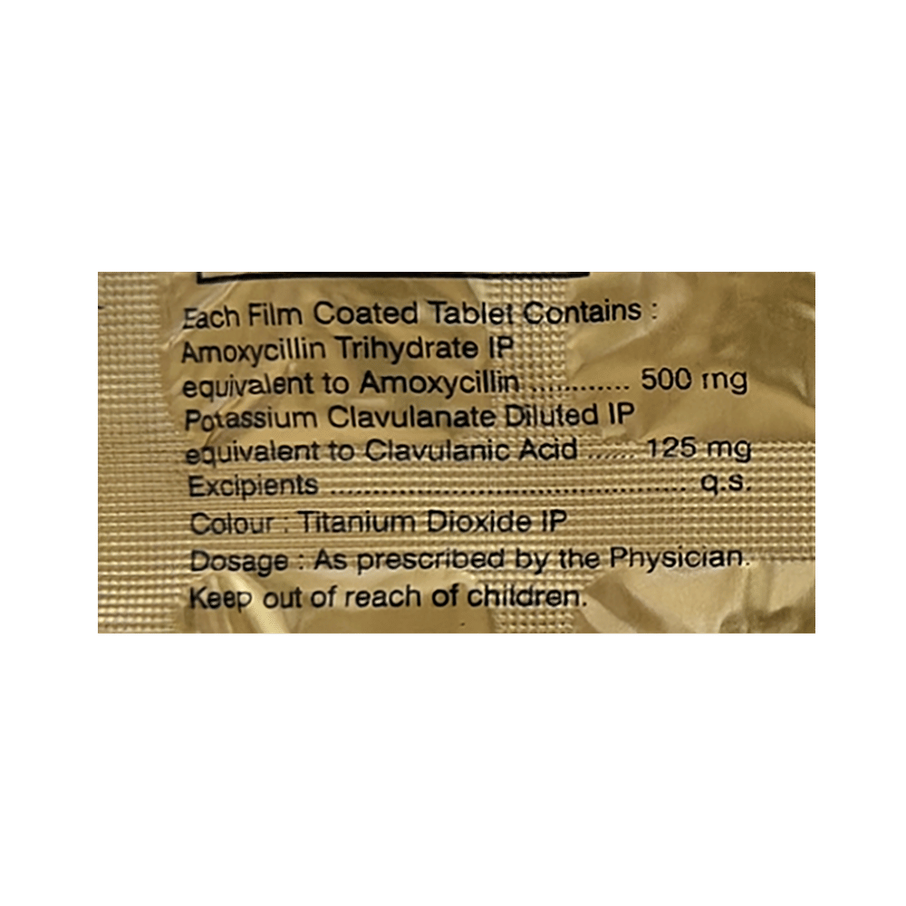 Salt Composition: Amoxycillin (500mg) + Clavulanic Acid (125mg)