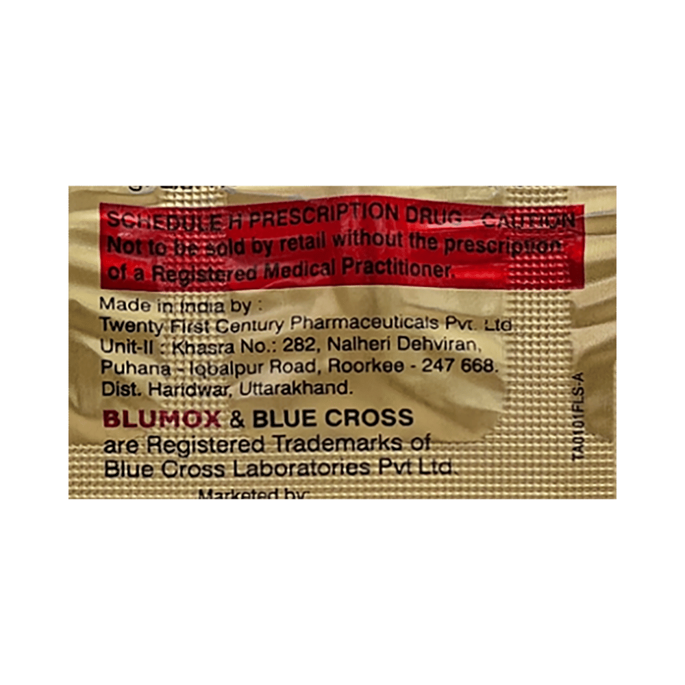 Blumox-CA 500mg/125mg Tablet is an antibiotic that helps your body fight infections caused by bacteria. It is used to treat infections of the lungs (e.g., pneumonia), the ear, the nasal sinus, the urinary tract, the skin, and the soft tissue. It will not work for viral infections such as the common cold. Blumox-CA 500mg/125mg Tablet is best taken with a meal to reduce the chance of a stomach upset. You should take it regularly at evenly spaced intervals as per the schedule prescribed by your doctor. Taking it at the same time daily will help you remember to take it. The dose will depend on what you are being treated for, but you should always complete an entire course of this antibiotic as your doctor prescribes. Please do not stop taking it until you have finished, even when you feel better. If you stop taking it early, some bacteria may survive, and the infection may return or worsen.The most common side effects of Blumox-CA 500mg/125mg Tablet include recurrent or persistent fungal infection (mucocutaneous candidiasis), nausea, diarrhea, and vomiting. If you experience any side effects that are persistent or worsen, consult your doctor for guidance.Before taking it, let your doctor know if you are allergic to any antibiotics or have kidney or liver problems. You should also inform your doctor about all other medicines you are taking, as they may affect or be affected by Blumox-CA 500mg/125mg Tablet. Pregnant and breastfeeding women should consult their doctor before using this medicine to make sure it is safe.