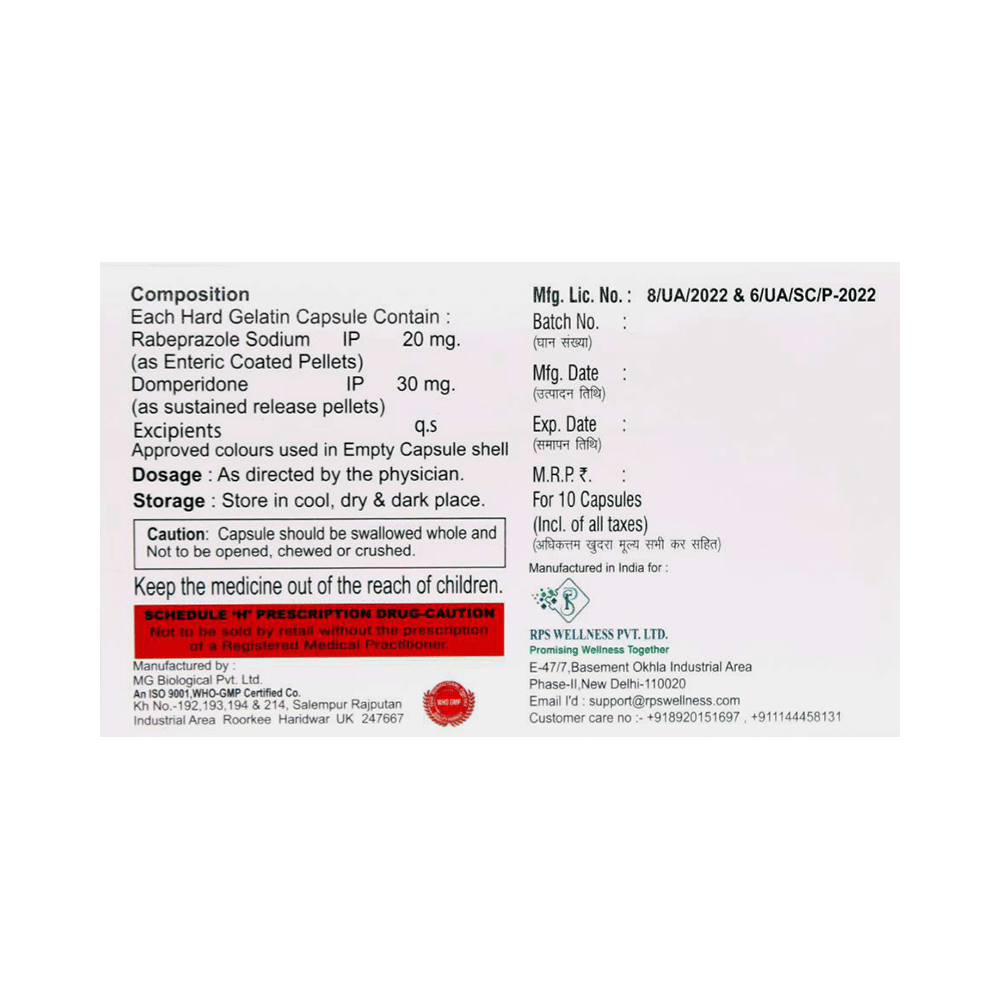 Salt Composition: Domperidone (30mg) + Rabeprazole (20mg)