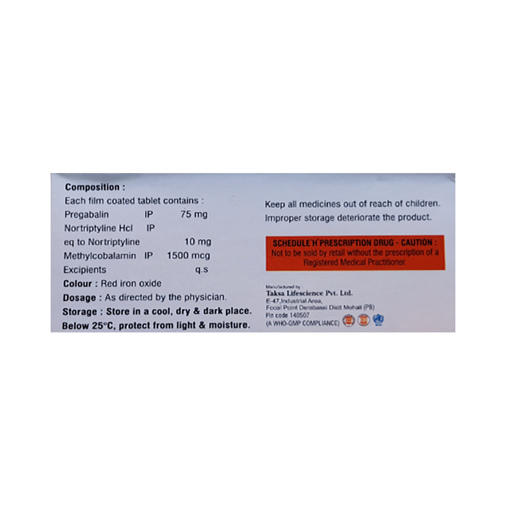 Salt Composition: Pregabalin (75mg) + Nortriptyline (10mg) + Methylcobalamin (1500mcg)