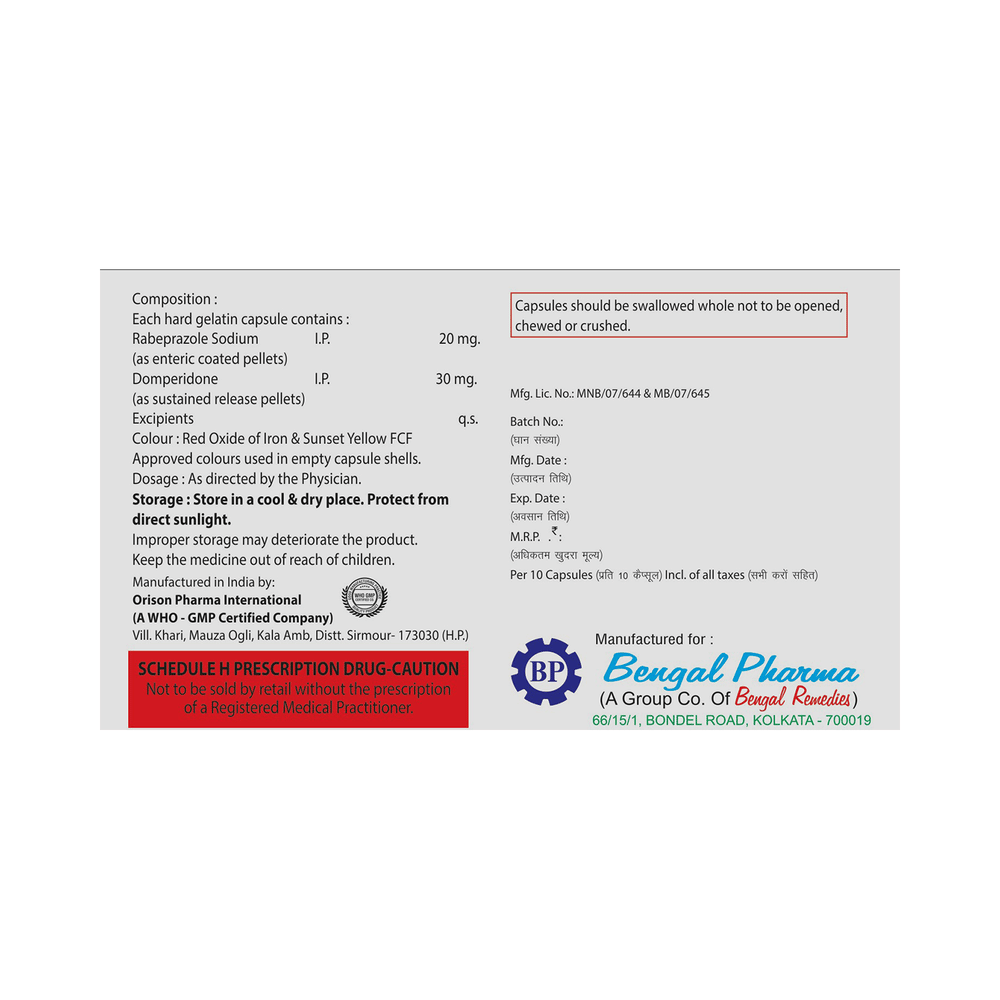 Salt Composition: Domperidone (30mg) + Rabeprazole (20mg)
