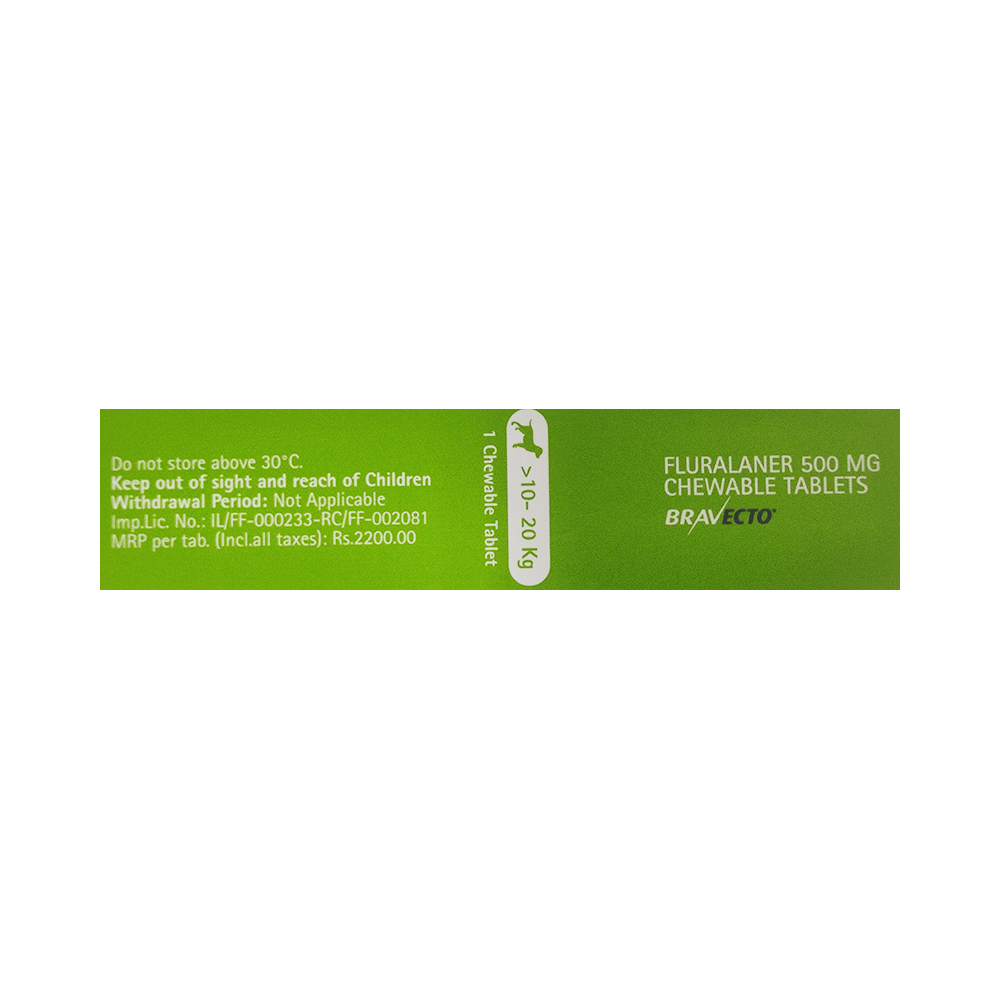 Explore the benefits of Bravecto 500mg Pet Chewable Tablet (For >10-20 Kg). Use as directed by your physician or as described in the instructions.