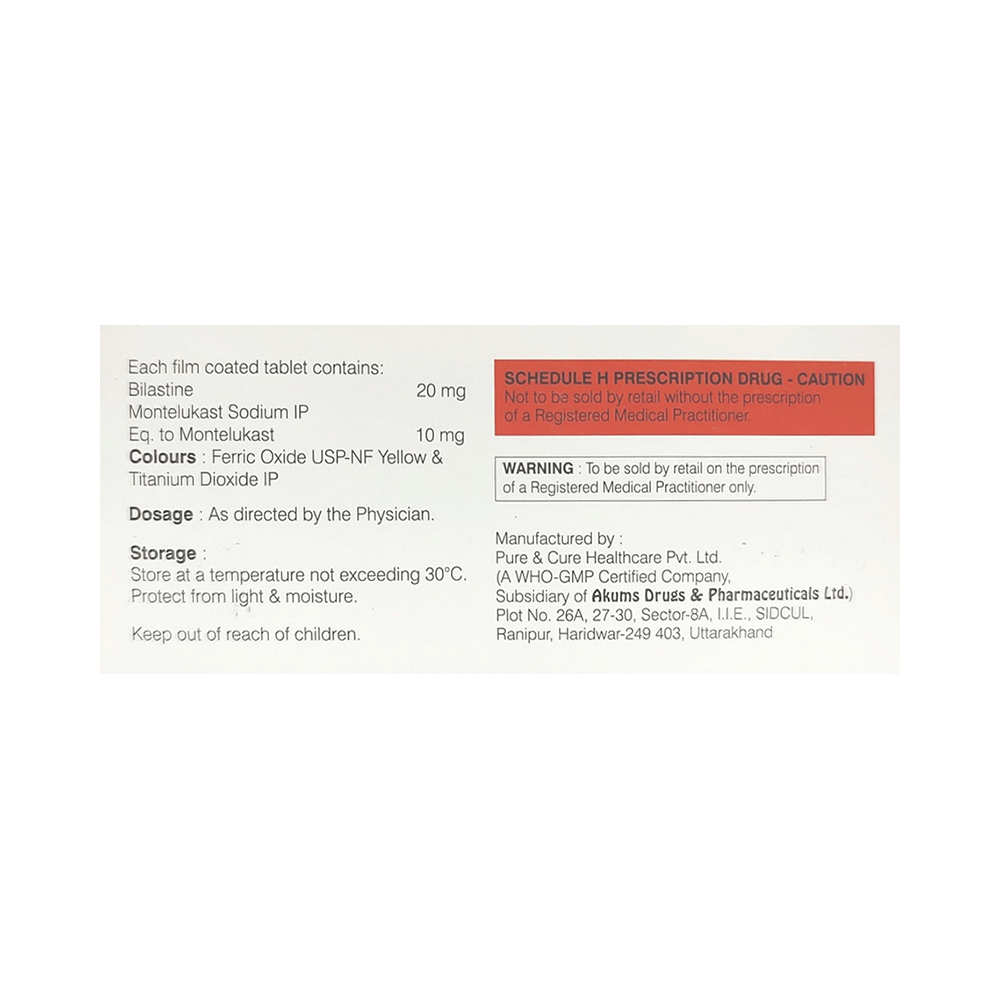 Salt Composition: Bilastine (20mg) + Montelukast (10mg)