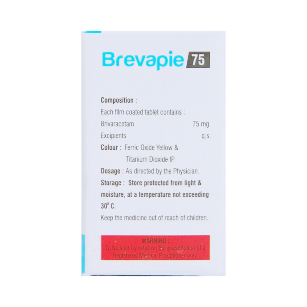Brevapie 75 Tablet is an anti-epileptic medicine used to treat seizures (fits) in epilepsy. It can be used alone or along with other medicines. It helps to prevent seizures for as long as you continue to take it. Brevapie 75 Tablet suppresses the abnormal electrical activity in the brain. You can take it regularly with or without food but try to take it at the same time each day to get the most benefit. The dose and how often you need it will be decided by your doctor so that you get the right amount to control your seizures. It may be increased gradually.It is generally advised as a long-term treatment. You should continue taking it for as long as your doctor has told you to, even if you feel well. If you stop or miss doses your seizures could get worse. Do not stop taking this medicine unless your doctor tells you to. This is because stopping the medicine suddenly could make your seizures worse.Some common side effects of this medicine include dizziness, headache, nausea, and vomiting. You may also experience behavioral changes, aggressive behavior, irritation, agitation, etc. Side effects are more common during the first few weeks and usually lessen as your body gets used to the medicine. Most of these side effects do not need medical attention, but some of them can be serious. A small number of people being treated with this medicine have had thoughts of harming or killing themselves. Contact your doctor if your mood changes for the worse.Before taking it, you should tell your doctor if you have liver or kidney-related problems, depression, or suicidal thoughts, and if you are pregnant or planning to become pregnant. Breastfeeding mothers should also consult their doctor before taking this medicine.