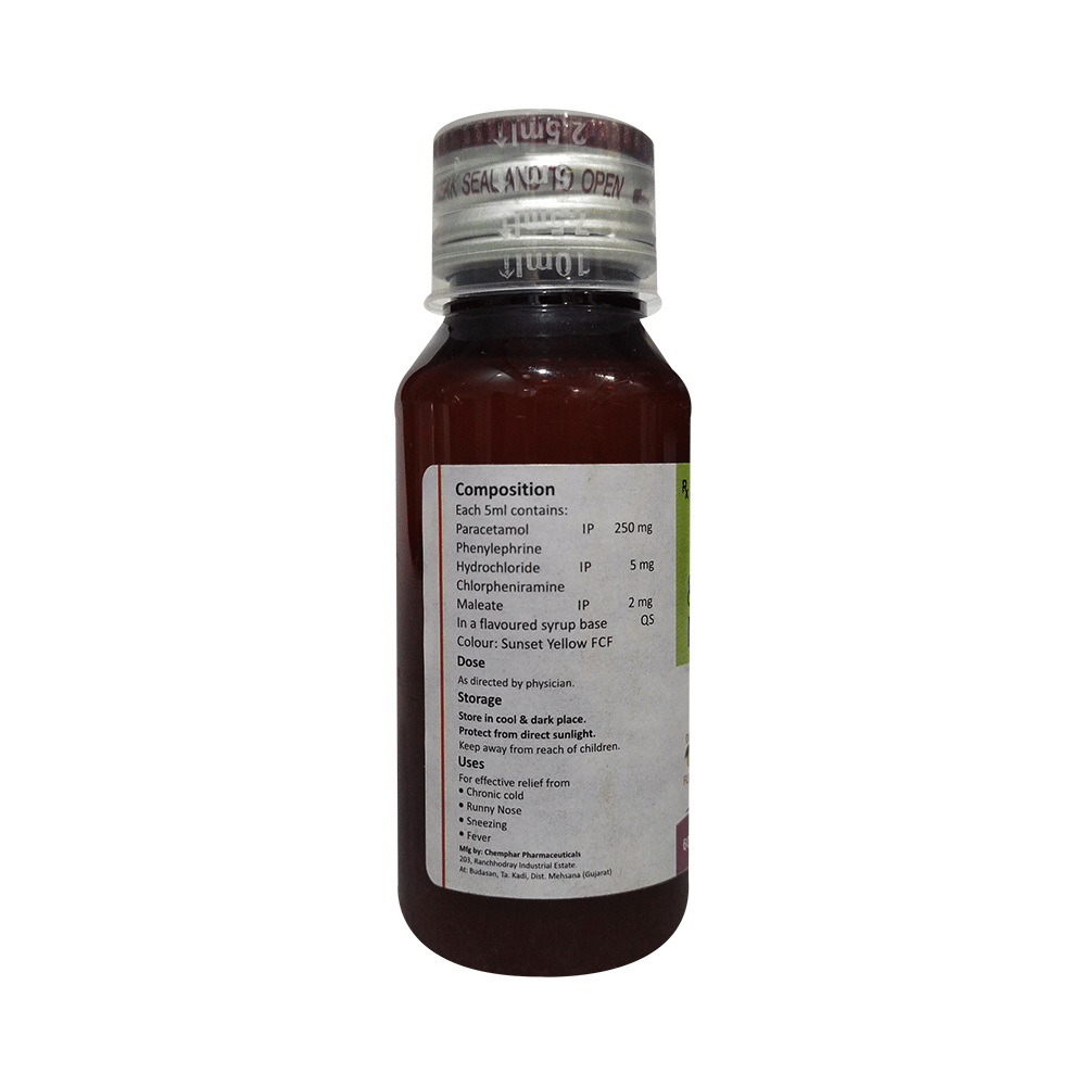Salt Composition: Chlorpheniramine Maleate (2mg/5ml) + Paracetamol (250mg/5ml) + Phenylephrine (5mg/5ml)