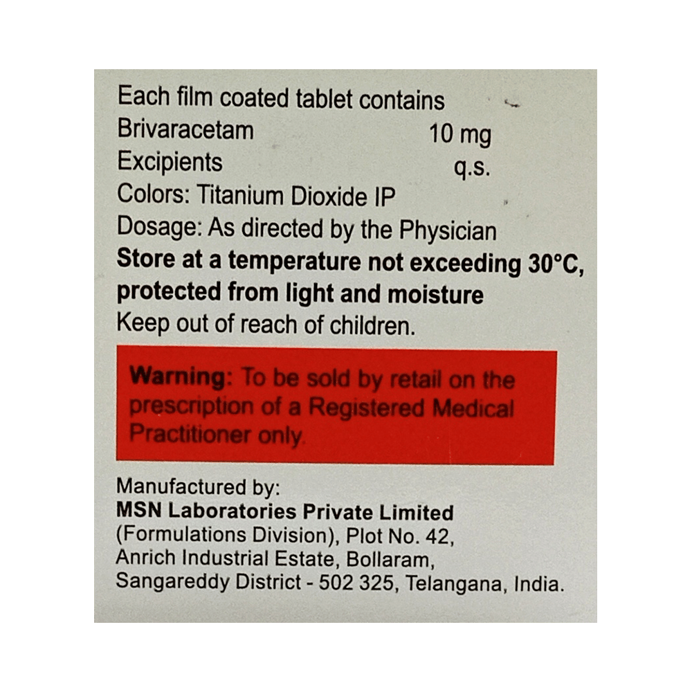 Bricet 10 Tablet is an antiepileptic medication. It works by attaching itself to specific sites (SV2A) on the surfaces of nerve cells. This suppresses the abnormal activity of the nerve cells in the brain and prevents the spread of electrical signals that cause seizures.