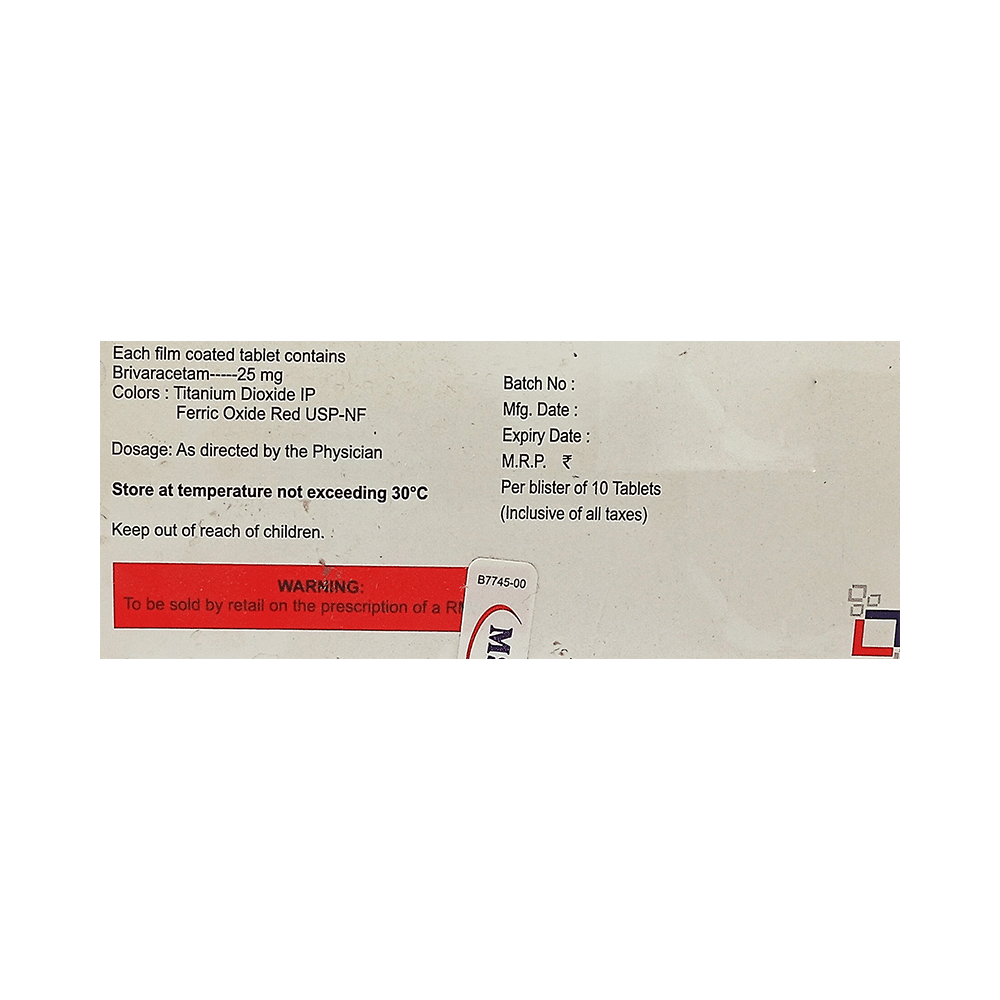 Brivanext 25 Tablet is an anti-epileptic medicine used to treat seizures (fits) in epilepsy. It can be used alone or along with other medicines. It helps to prevent seizures for as long as you continue to take it. Brivanext 25 Tablet suppresses the abnormal electrical activity in the brain. You can take it regularly with or without food but try to take it at the same time each day to get the most benefit. The dose and how often you need it will be decided by your doctor so that you get the right amount to control your seizures. It may be increased gradually.It is generally advised as a long-term treatment. You should continue taking it for as long as your doctor has told you to, even if you feel well. If you stop or miss doses your seizures could get worse. Do not stop taking this medicine unless your doctor tells you to. This is because stopping the medicine suddenly could make your seizures worse.Some common side effects of this medicine include dizziness, headache, nausea, and vomiting. You may also experience behavioral changes, aggressive behavior, irritation, agitation, etc. Side effects are more common during the first few weeks and usually lessen as your body gets used to the medicine. Most of these side effects do not need medical attention, but some of them can be serious. A small number of people being treated with this medicine have had thoughts of harming or killing themselves. Contact your doctor if your mood changes for the worse.Before taking it, you should tell your doctor if you have liver or kidney-related problems, depression, or suicidal thoughts, and if you are pregnant or planning to become pregnant. Breastfeeding mothers should also consult their doctor before taking this medicine.