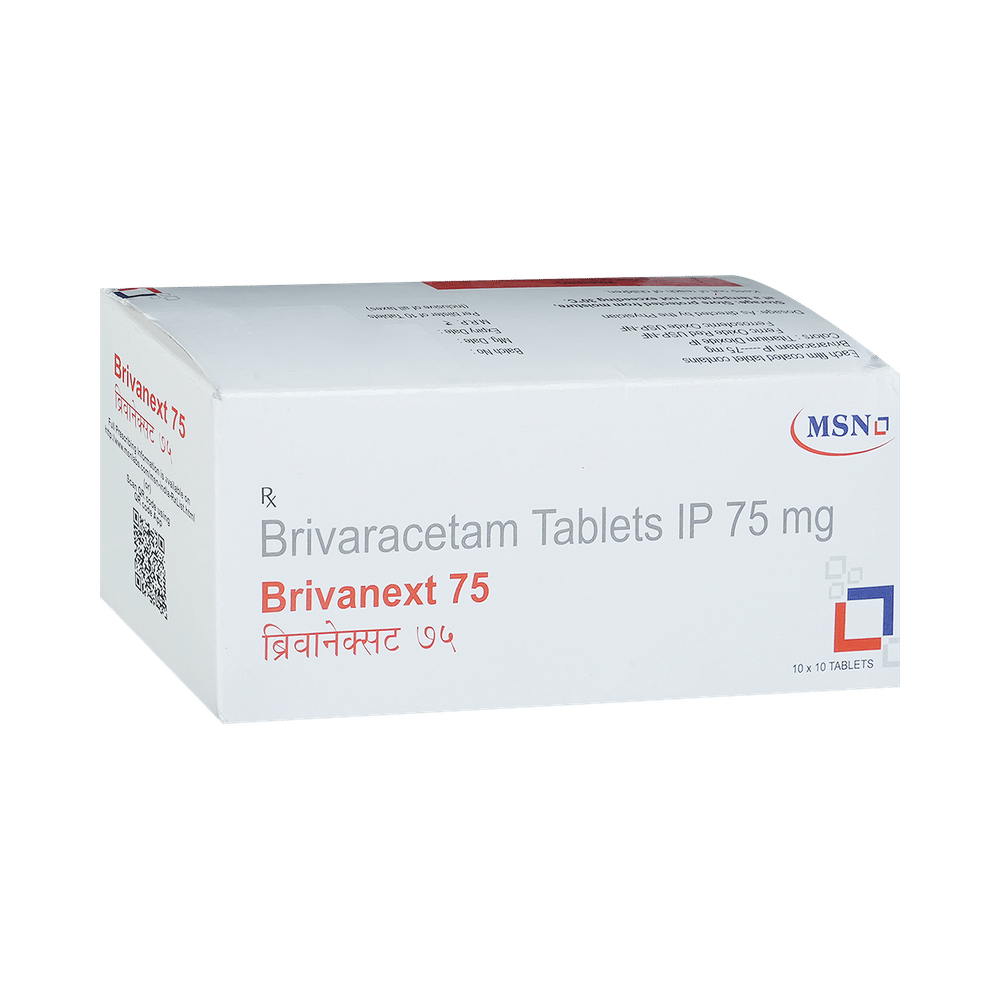 Brivanext 75mg Tablet is an anti-epileptic medicine used to treat seizures (fits) in epilepsy. It can be used alone or along with other medicines. It helps to prevent seizures for as long as you continue to take it. Brivanext 75mg Tablet suppresses the abnormal electrical activity in the brain. You can take it regularly with or without food but try to take it at the same time each day to get the most benefit. The dose and how often you need it will be decided by your doctor so that you get the right amount to control your seizures. It may be increased gradually.It is generally advised as a long-term treatment. You should continue taking it for as long as your doctor has told you to, even if you feel well. If you stop or miss doses your seizures could get worse. Do not stop taking this medicine unless your doctor tells you to. This is because stopping the medicine suddenly could make your seizures worse.Some common side effects of this medicine include dizziness, headache, nausea, and vomiting. You may also experience behavioral changes, aggressive behavior, irritation, agitation, etc. Side effects are more common during the first few weeks and usually lessen as your body gets used to the medicine. Most of these side effects do not need medical attention, but some of them can be serious. A small number of people being treated with this medicine have had thoughts of harming or killing themselves. Contact your doctor if your mood changes for the worse.Before taking it, you should tell your doctor if you have liver or kidney-related problems, depression, or suicidal thoughts, and if you are pregnant or planning to become pregnant. Breastfeeding mothers should also consult their doctor before taking this medicine.
