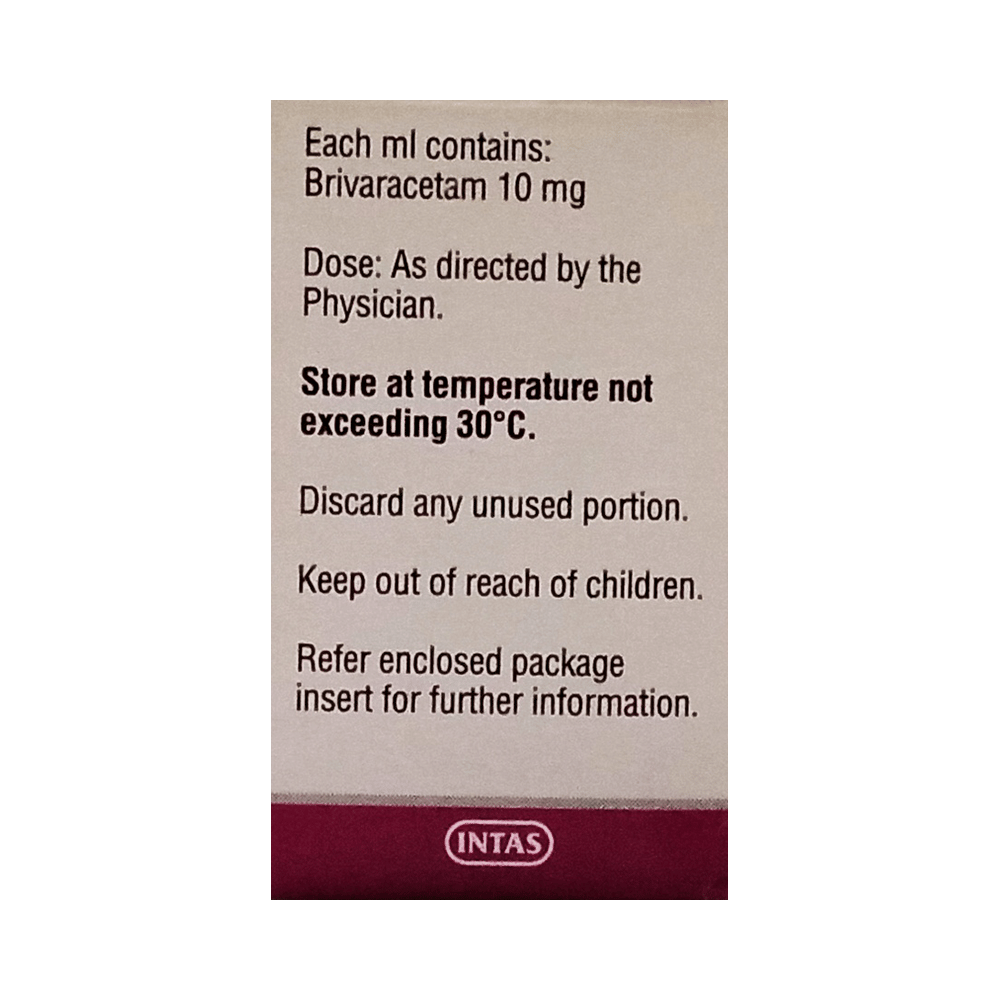 Brivazen Injection is a medicine used to treat seizures in people with epilepsy. It helps to control the number and severity of seizures. It works by affecting certain chemicals in the brain that are involved in the spread of seizure activity. It helps stabilize brain activity and prevent seizures. Brivazen Injection is generally administered by a doctor or a nurse in a hospital or clinic setting. It is important to follow your doctor’s instructions carefully for the best results. Make sure to attend all scheduled appointments for your injections. To get the maximum benefits, continue to use the medication as prescribed and do not skip doses. Even if you feel better, it's important to complete your treatment plan.Common side effects of Brivazen Injection include dizziness, tiredness, sleepiness, nausea, vomiting, and headaches. If you experience these, let your doctor know as they can offer advice on how to manage them. To reduce side effects, avoid sudden movements or standing up quickly, as this can help prevent dizziness. If you experience severe side effects or any unusual symptoms, contact your doctor immediately.While on treatment with Brivazen Injection, avoid drinking alcohol, as it can increase the risk of side effects like drowsiness or dizziness. Be cautious when driving or operating machinery until you know how the medication affects you. If you have a history of depression or mood changes, inform your doctor, as the medication may affect your mood.Always discuss any other medications you are taking with your doctor to avoid potential interactions. If you have any serious medical conditions, make sure to let your doctor know before starting treatment with Brivazen Injection. Pregnant and breastfeeding women should consult their doctor before starting Brivazen Injection to make sure it is safe for them.