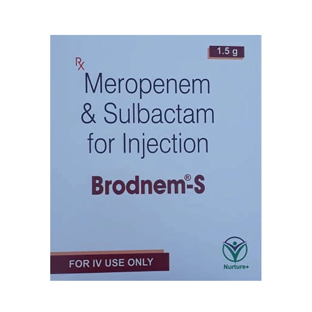 Brodnem-S Injection is a combination medicine that is prescribed to treat various types of bacterial infections. It fights against the microorganisms to prevent their growth. Brodnem-S Injection should only be administered under the supervision of a healthcare professional. Do not miss any scheduled appointments for taking this medicine. The course of the medicine should be completed even if you feel better.The common side effects of this medicine are nausea, vomiting, diarrhea, rashes, etc. You may also experience injection site redness, swelling, and pain that goes away with time. If any of the side effects get aggravated, you must consult your doctor immediately. If you experience any allergic reaction (rashes, itching, swelling, shortness of breath, etc.), you must seek immediate medical help.Before taking this medicine, you should tell your doctor if you are taking any medicines for any health condition. Pregnant or breastfeeding women should also consult with their doctor before taking it. Avoid drinking alcohol as it can cause excessive drowsiness with this medicine. It usually does not impair your ability to drive, but you should not drive if it makes you feel sleepy or dizzy.