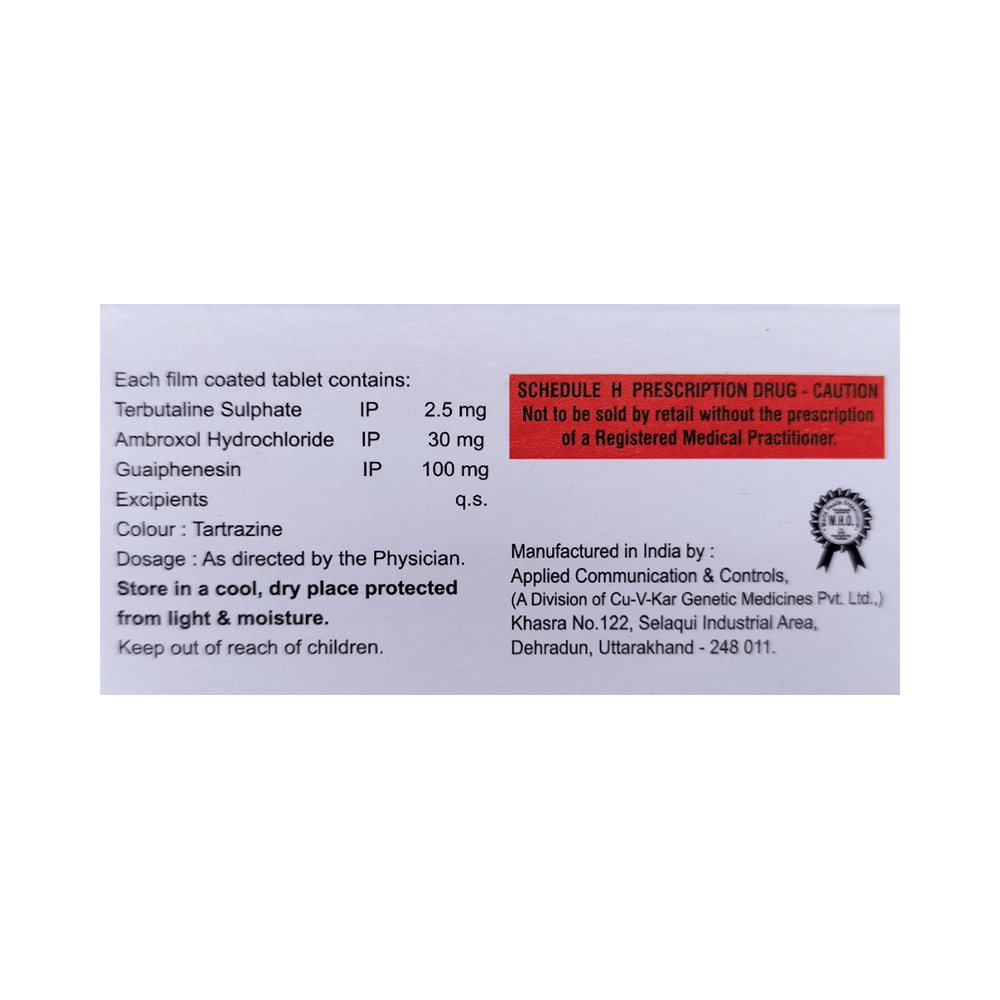 Salt Composition: Ambroxol (30mg) + Guaifenesin (100mg) + Terbutaline (2.5mg)
