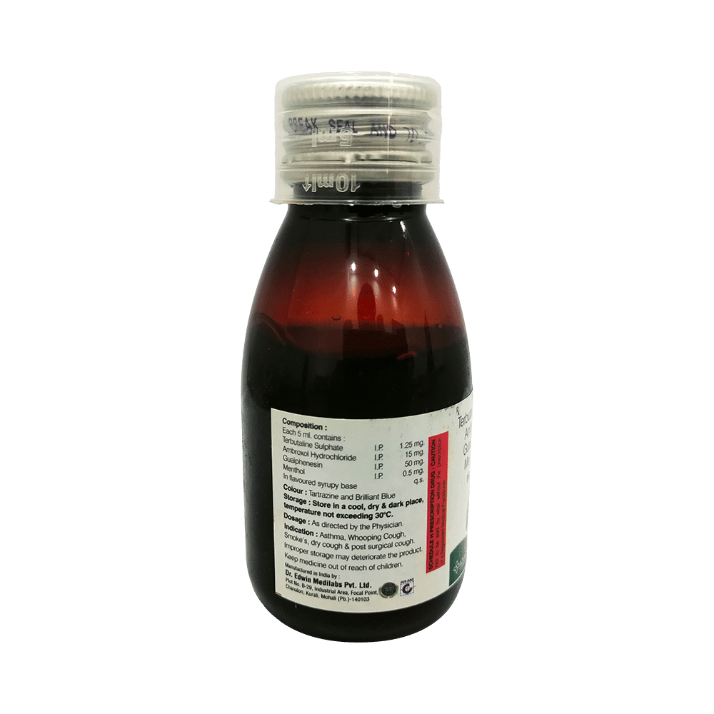 Salt Composition: Ambroxol (15mg/5ml) + Guaifenesin (50mg/5ml) + Menthol (0.5mg/5ml) + Terbutaline (1.25mg/5ml)