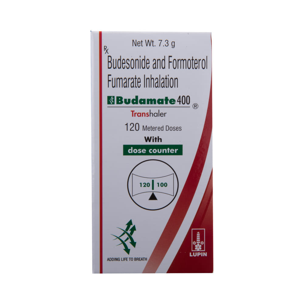 budaMATE 400 Transhaler is a combination of two medicines in one inhaler. It relieves the long-term symptoms of asthma and COPD, making breathing easier. It works by inhibiting the release of certain chemical messengers that cause inflammation (swelling) and relaxes the muscles in the airways. Your doctor will tell you how often you need to use your inhaler. The effect of this medicine may be noticeable after a few days but will only reach its maximum after a few weeks. This medicine must be used regularly to be effective, so go on taking it even if you don't have any symptoms. That means it’s doing its job. If you stop taking it your symptoms may get worse. This medicine should not be used to relieve sudden shortness of breath. If sudden shortness of breath occurs, use your rescue inhaler. To get the benefit from this medicine you need to make sure you get your inhaler technique right, otherwise, it does not work as well.The most common side effects include headache, nausea, vomiting, stomach discomfort, and respiratory tract infection. If you get there, don’t stop taking it but do talk to your doctor. You can prevent some of these symptoms by rinsing your mouth and throat with water or brushing your teeth after using your inhaler. There are other, rarer side effects which can be serious. Talk to your doctor if you're worried about them.Before taking it, you should tell your doctor if you have any kidney or liver diseases so that your doctor can prescribe a suitable dose for you. You should also tell your doctor if you are pregnant, planning pregnancy or breastfeeding.