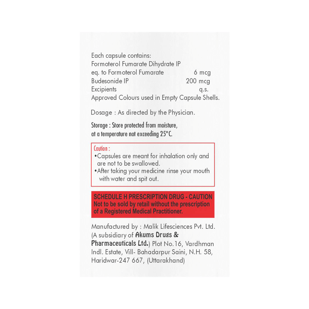 Salt Composition: Formoterol (6mcg) + Budesonide (200mcg)