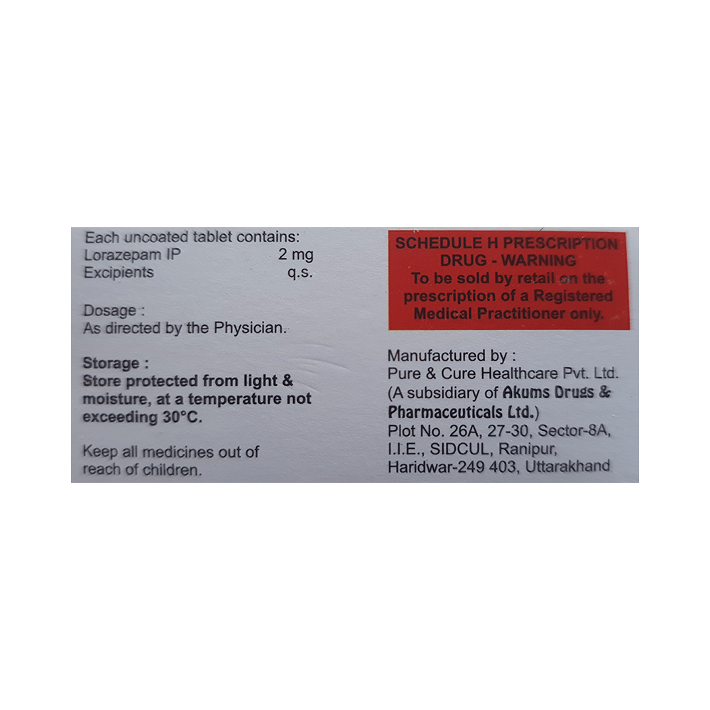 Salt Composition: Lorazepam (2mg)