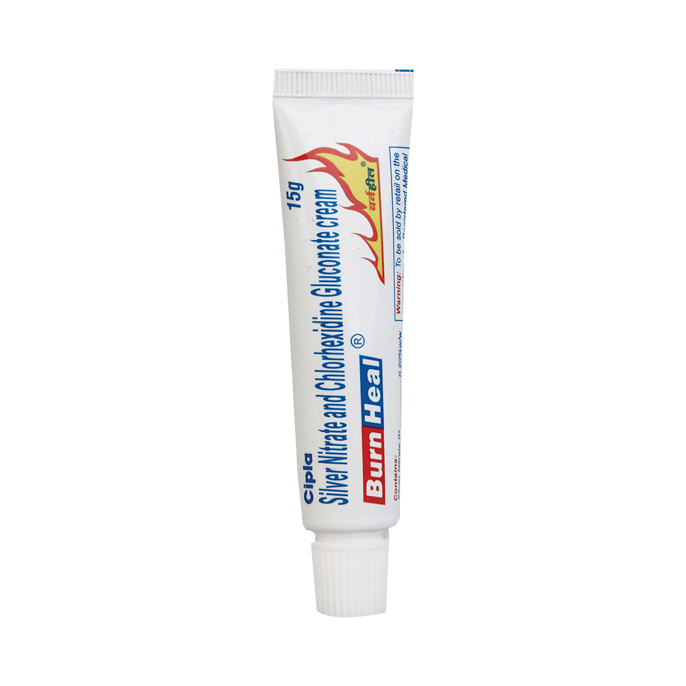 Burnheal Cream is a combination of two antiseptic medicines: Chlorhexidine Gluconate and Silver Nitrate. Chlorhexidine Gluconate works by binding strongly with skin and killing infectious microorganisms. Hence, it effectively cleans out wounds and burns to prevent them from getting infected. Silver Nitrate stops bacteria from producing folic acid, a nutrient required for bacterial multiplication. This kills the bacteria and treats skin infection due to burns.