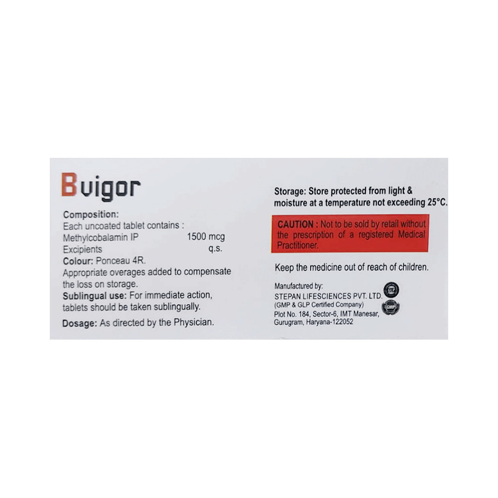 In Vitamin B12 deficiencyBvigor Sublingual tablet Cherry is a supplement of vitamin B12. It is used to treat low levels of vitamin B12 in your body. Vitamin B12 is essential in the formation of red blood cells and helps in the absorption of iron in the body. It also helps your body use fat and carbohydrates for energy and make new protein. In combination with other vitamins, it helps in strengthening the immune system, improves the metabolism of the body, and is important for the nervous system.