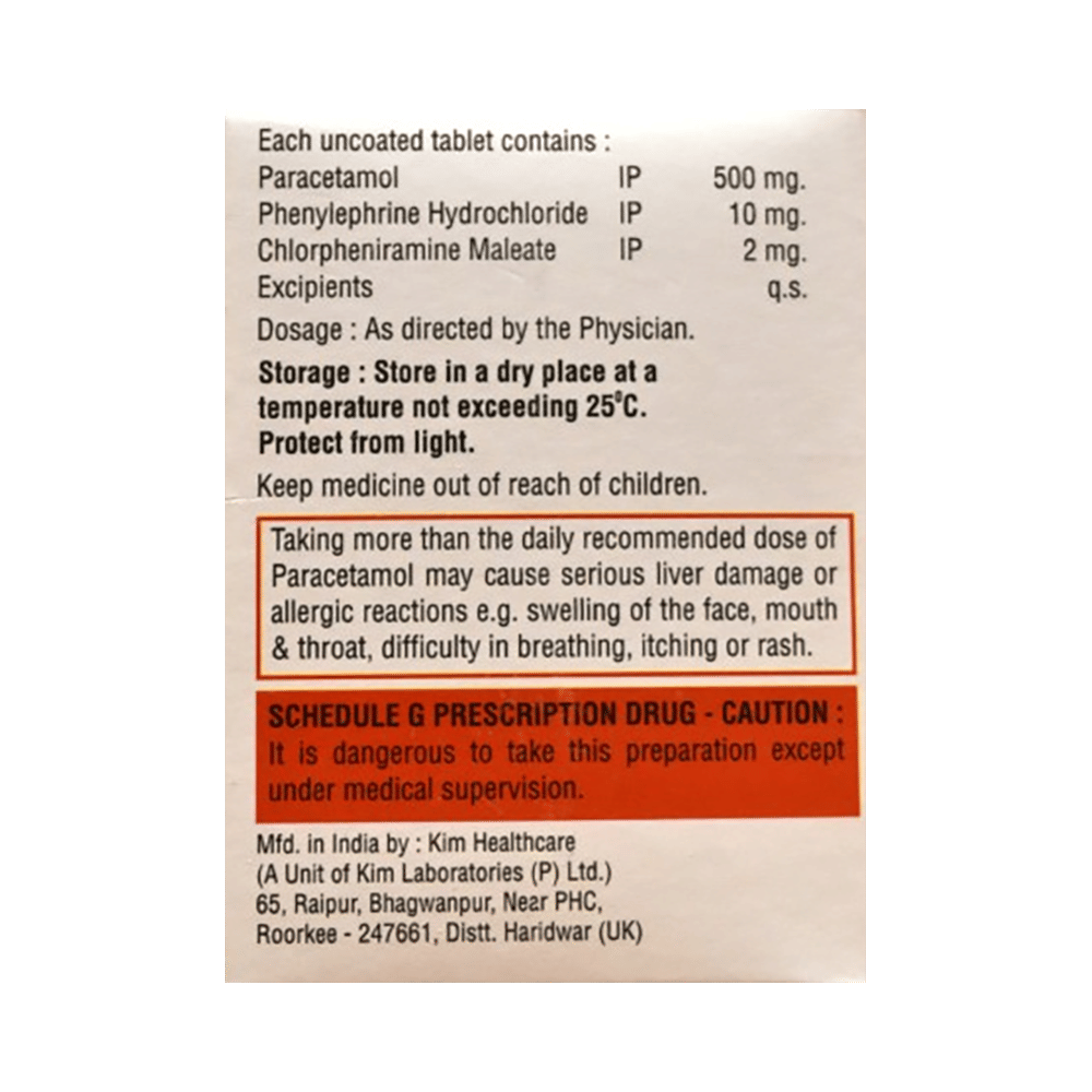 Salt Composition: Chlorpheniramine Maleate (2mg) + Paracetamol (500mg) + Phenylephrine (10mg)