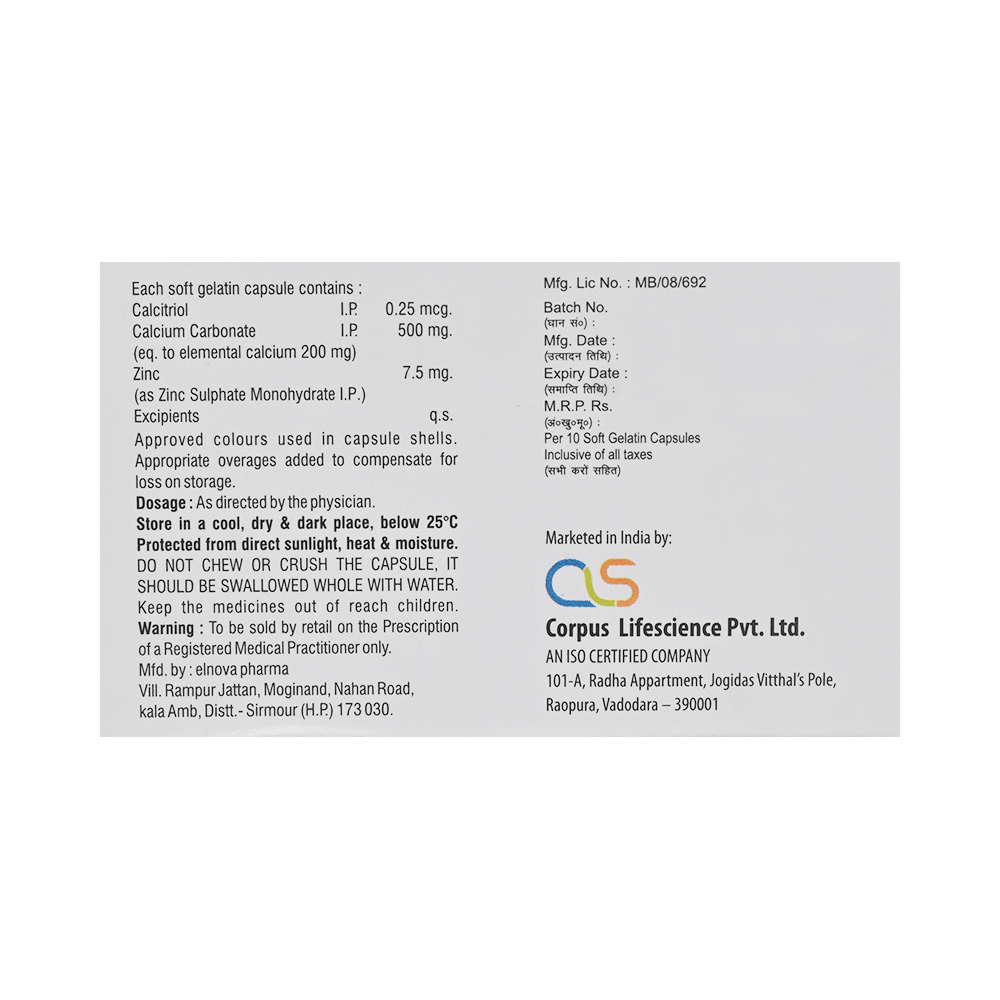 Salt Composition: Calcitriol (0.25mcg) + Calcium Carbonate (500mg) + Zinc Sulfate (7.5mg)