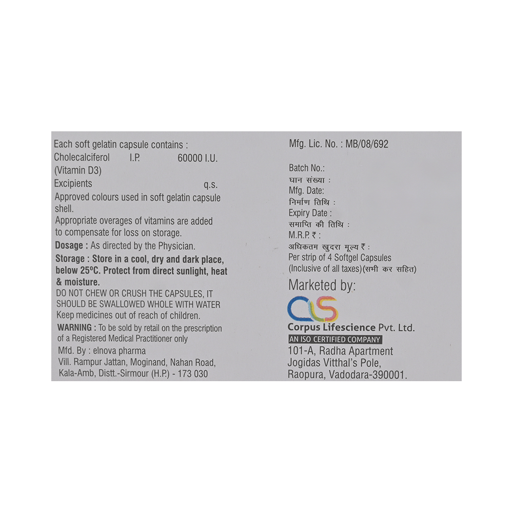 Calcifav-D3 60K Softgel Capsule is used in the treatment of vitamin D deficiency and osteoporosis. It helps the body to absorb calcium. Calcium is essential for maintaining strong and healthy bones. It is used when your diet does not provide enough calcium. Calcifav-D3 60K Softgel Capsule should be taken as directed by your doctor. It is best taken with or after food, as this helps your body absorb it, and you should take it regularly to get the most benefits. If you are using it to treat osteoporosis, you will also be prescribed other medicines. This medicine may be only part of a complete treatment program that includes making changes to your diet and taking calcium and vitamin supplements. Learn about the foods you should eat to ensure you get enough calcium and vitamin D.Calcifav-D3 60K Softgel Capsule has few side effects, and none are common. If you take too much, you may feel weakness, muscle pain, or a metallic taste in your mouth. If you experience any such side effects, speak with your doctor. They may be able to help you reduce or treat the symptoms.Before taking this medicine, tell your doctor if you have high calcium levels in your blood or if you have any heart, kidney, or liver disease. Some other medicines can decrease the absorption of vitamin D3, so let your doctor know about all the other medicines you are taking to make sure you are safe. This medicine may help during pregnancy when your body needs more vitamin D, but too much could harm your baby. Discuss it with your doctor.