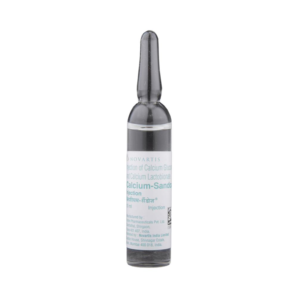 Calcium Sandoz Injection is prescription medicine having a combination of medicines that is used in the treatment of calcium deficiency. This medicine helps in improving the strengthening of the bones. Calcium Sandoz Injection injection is administered under the supervision of a healthcare professional. You are not advised to self administer this injection. Inform your doctor if you have any known allergy from this medication.You may experience symptoms of injection site reactions such as redness, swelling, and pain. Usually, they go away with time but if these symptoms persist for a longer duration, please consult your doctor. Inform your doctor if you are suffering from any disease or are taking any medicines.