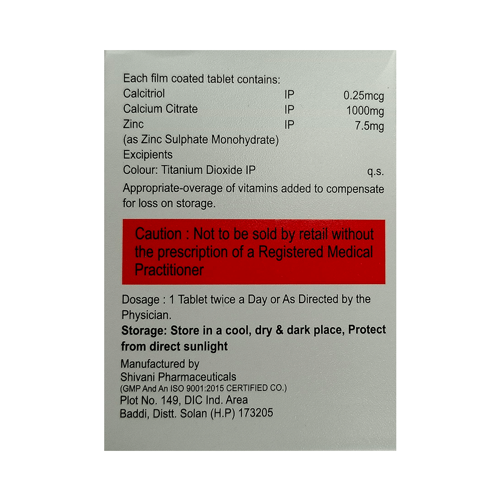 Salt Composition: Calcitriol (0.25mcg) + Calcium Carbonate (1000mg) + Zinc Sulfate (7.5mg)