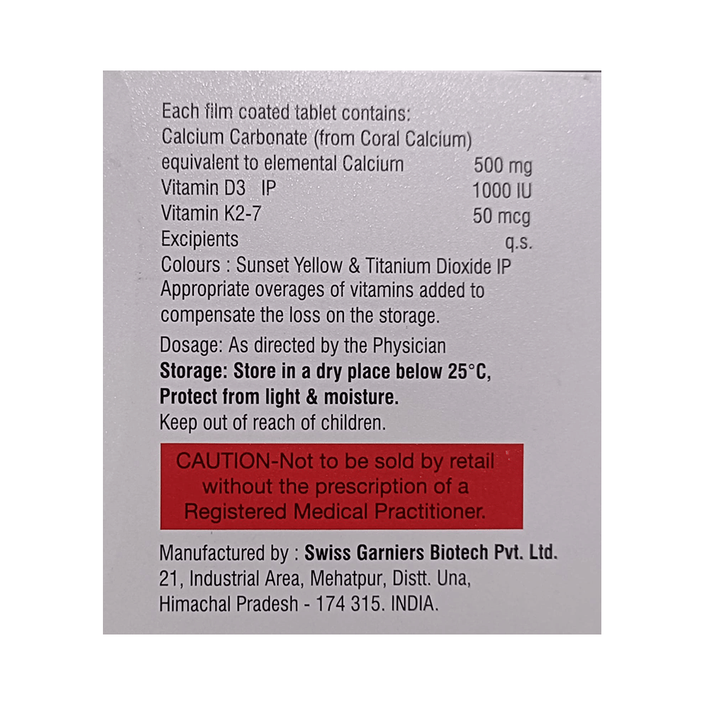 Salt Composition: Calcitriol (1000IU) + Calcium Carbonate (500mg) + Vitamin K2-7 (50mcg)