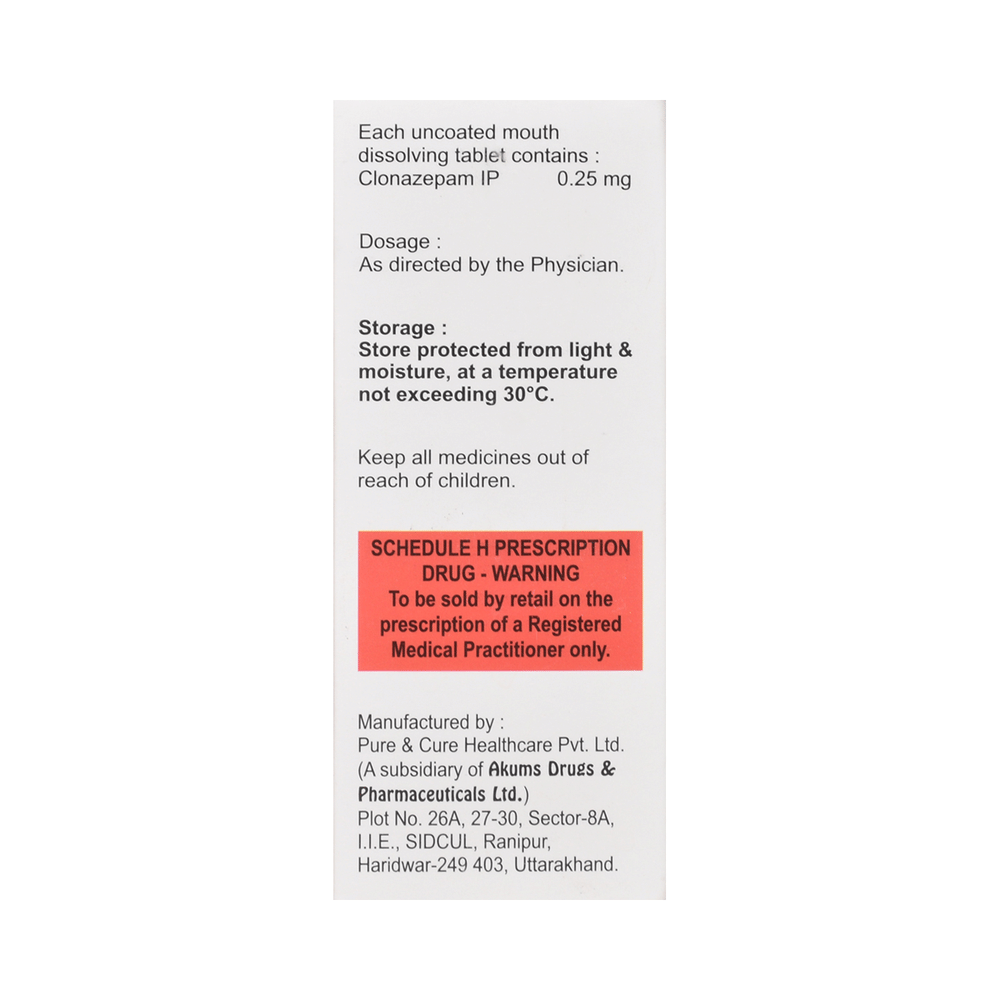 Salt Composition: Clonazepam (0.25mg)