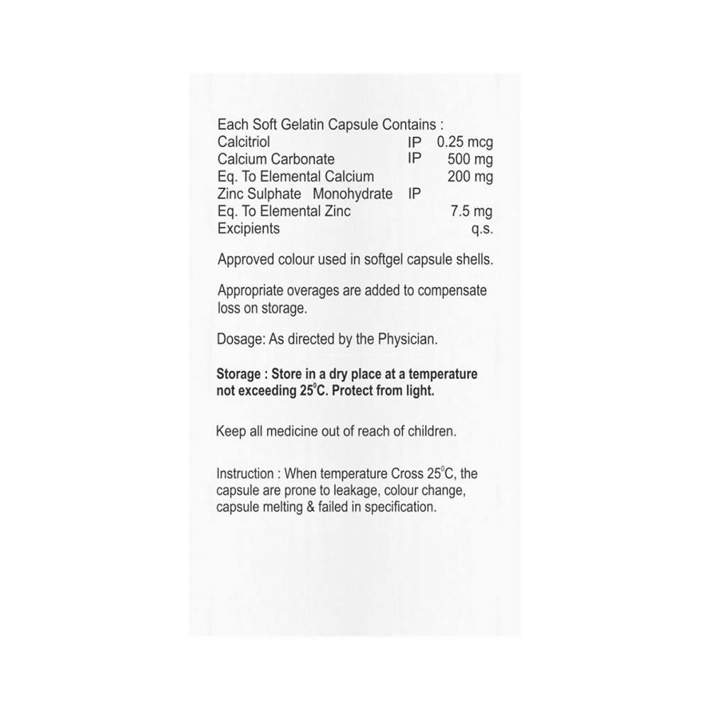Salt Composition: Calcitriol (0.25mcg) + Calcium Carbonate (500mg) + Zinc Sulfate (7.5mg)