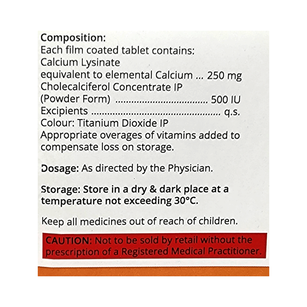 Salt Composition: Calcium (250mg) + Vitamin D3 (500IU)