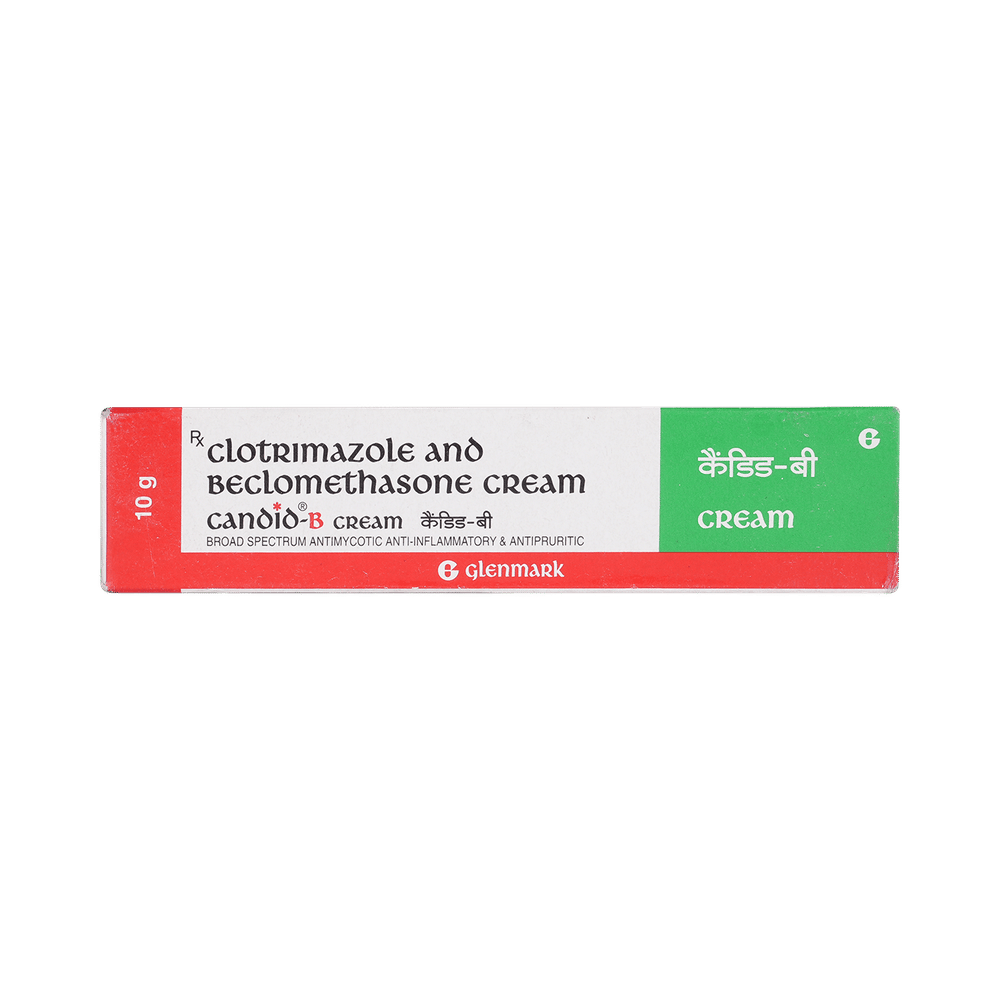 Candid-B Cream is a combination medicine. It is used to treat various types of skin infections usually the fungal type of skin infections. It minimizes symptoms of inflammation such as redness, swelling, and itching. It also acts against the infection-causing microorganisms. Candid-B Cream is only meant for external use and should be used as advised by your doctor. A thin layer of the medicine should be applied only to the affected areas of the skin with clean and dry hands. If it gets into your eyes, nose, mouth, or vagina rinse with water. It may take several days to weeks for your symptoms to improve, but you should keep using this medicine regularly. The course of the treatment should be completed to ensure better efficacy of the medicine. If your condition does not improve or gets worse, you should talk to your doctor.The most common side effect of this medicine includes dryness and paresthesia (tingling or pricking sensation). These are usually self-limiting. Serious side effects are rare. Consult your doctor if you experience any allergic reaction (rashes, itching, swelling, shortness of breath, etc.).Before taking this medicine, it is important to tell your doctor if you are taking or have recently taken any other medicines for the same disease or other diseases. Pregnant and breastfeeding women should take this medicine with proper consultation and caution.
