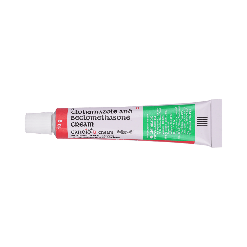 In Treatment of Fungal skin infectionsCandid-B Cream is a combination of two medicines, Clotrimazole and Beclometasone, used to treat skin infections caused by fungi. These include infections like athlete’s foot, ringworm, vaginal thrush, and sweat rash. Clotrimazole works by killing and stopping the growth of fungi, thereby clearing the infection and relieving the symptoms. Beclometasone blocks the release of chemicals that cause symptoms such as itching, redness, and swelling. Therefore this medicine relieves the inflammation due to these infections.You should use this medicine for as long as it is prescribed, even if your symptoms disappear, otherwise they may come back. Depending on the type of infection you are treating, this may be several weeks. Even after your skin is completely cured, you may have to apply it occasionally to prevent the symptoms from returning.